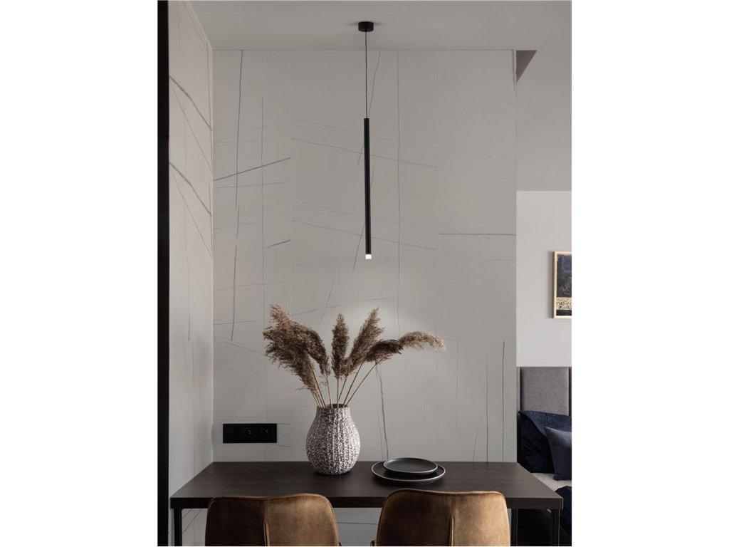 Závesné svietidlo DANDIA, 6W je k dispozícii v čiernej farbe. Svietidlo je vyrobené z hliníka. Rozmery svietidla sú 8x150 cm. Integrovaný LED zdroj vydáva teplé biele svetlo (3000K). Svietivosť zdroja 367 lúmenov a je nestmievateľný. Svietidlo odporúčame do spálne, pracovne alebo obývačky.