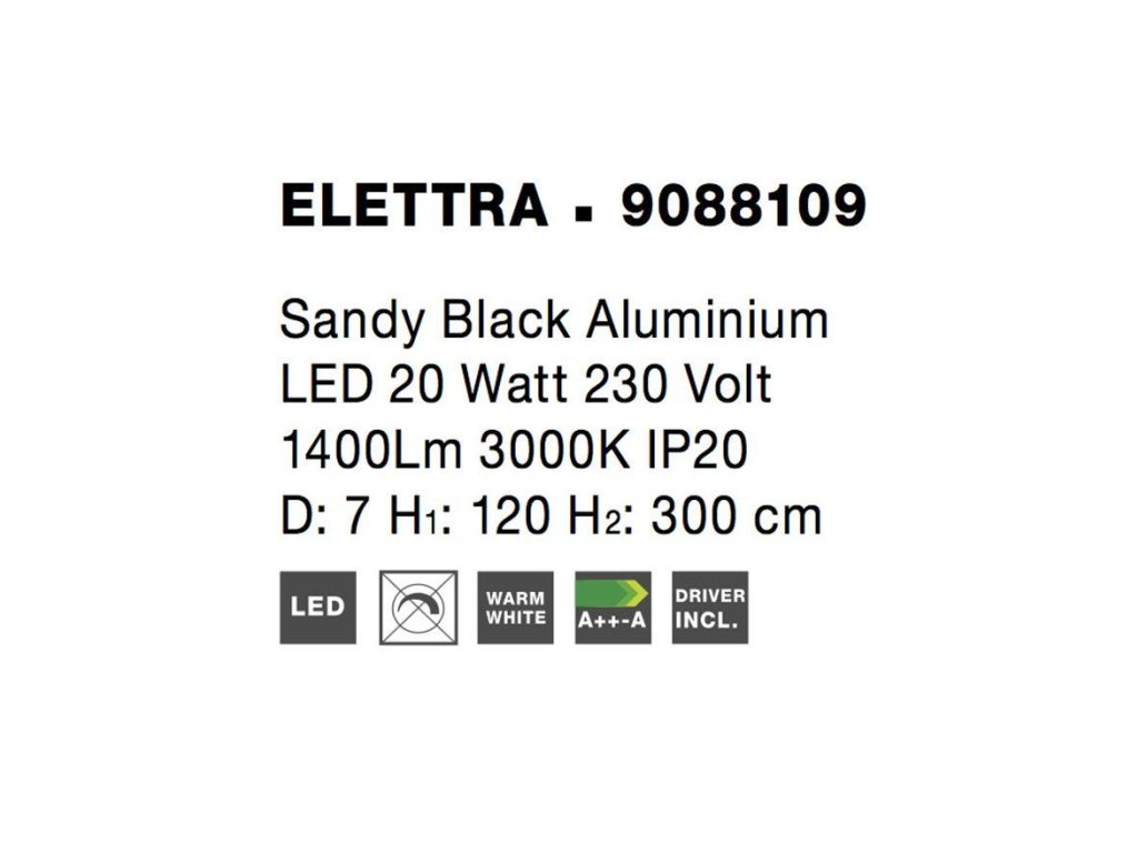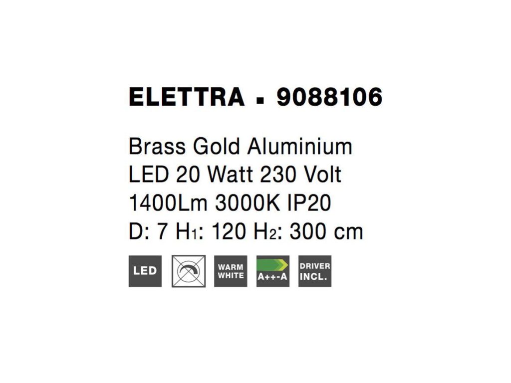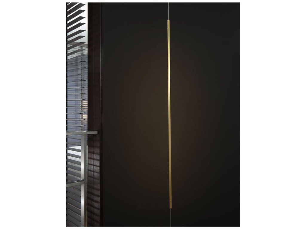 Závesné svietidlo ELETTRA, 20W je k dispozícii v čiernej a zlatej farbe. Svietidlo je vyrobené z hliníka. Rozmery svietidla sú 7x300 cm. Integrovaný LED zdroj vydáva teplé biele svetlo (3000K). Svietivosť zdroja je 1400 lúmenov a je nestmievateľný. Svietidlo odporúčame do obývacej izby, spálne alebo pracovne.