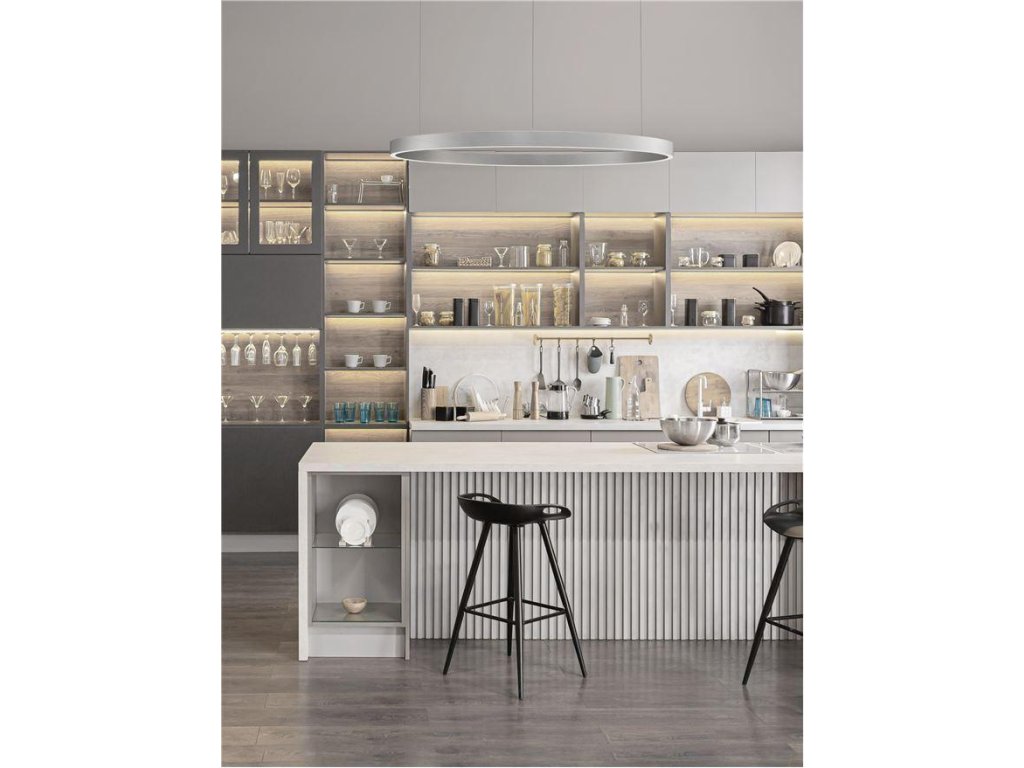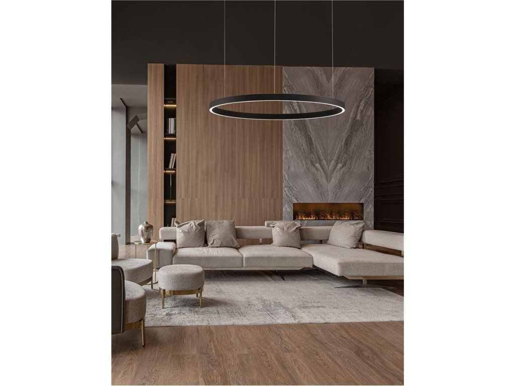 Závesné svietidlo ELOWEN, 100W je k dispozícii v bielej, čiernej, zlatej a striebornej farbe. Svietidlo je vyrobené z hliníka. Rozmery svietidla sú 98x200 cm. Integrovaný LED zdroj vydáva teplé biele svetlo (3000K). Svietivosť zdroja je 4899 lúmenov a je stmievateľný systémom TRIAC. Svietidlo odporúčame nad jedálenský stôl, do obývacej izby alebo spálne.