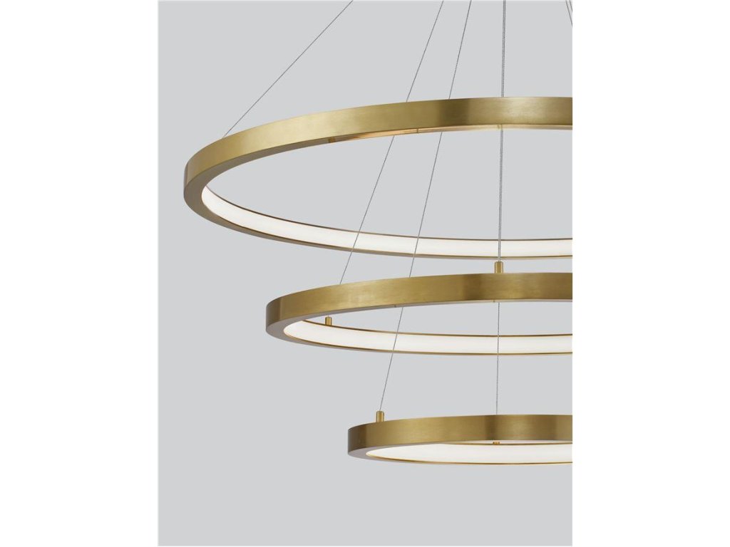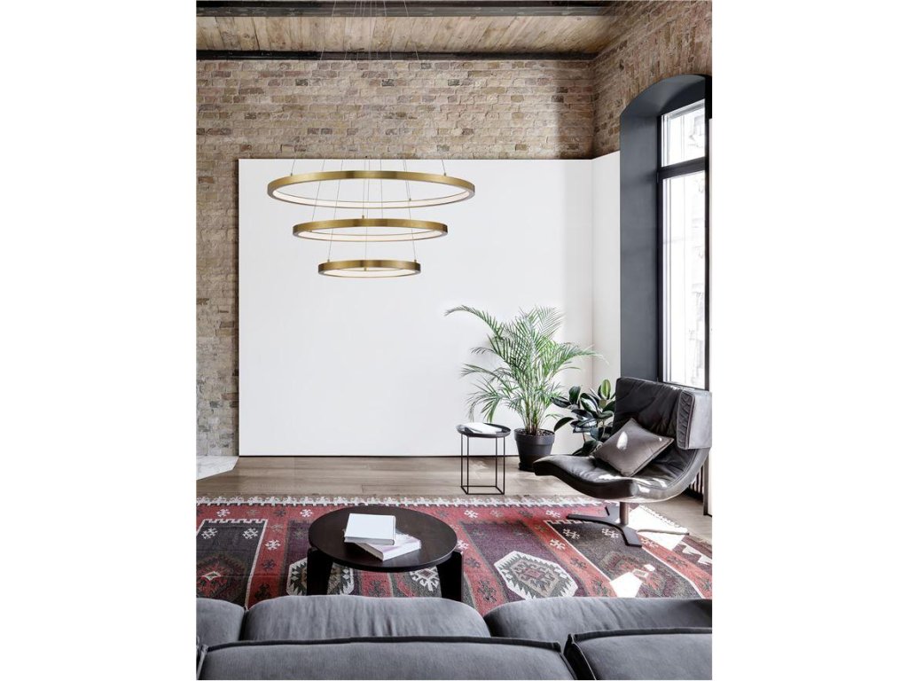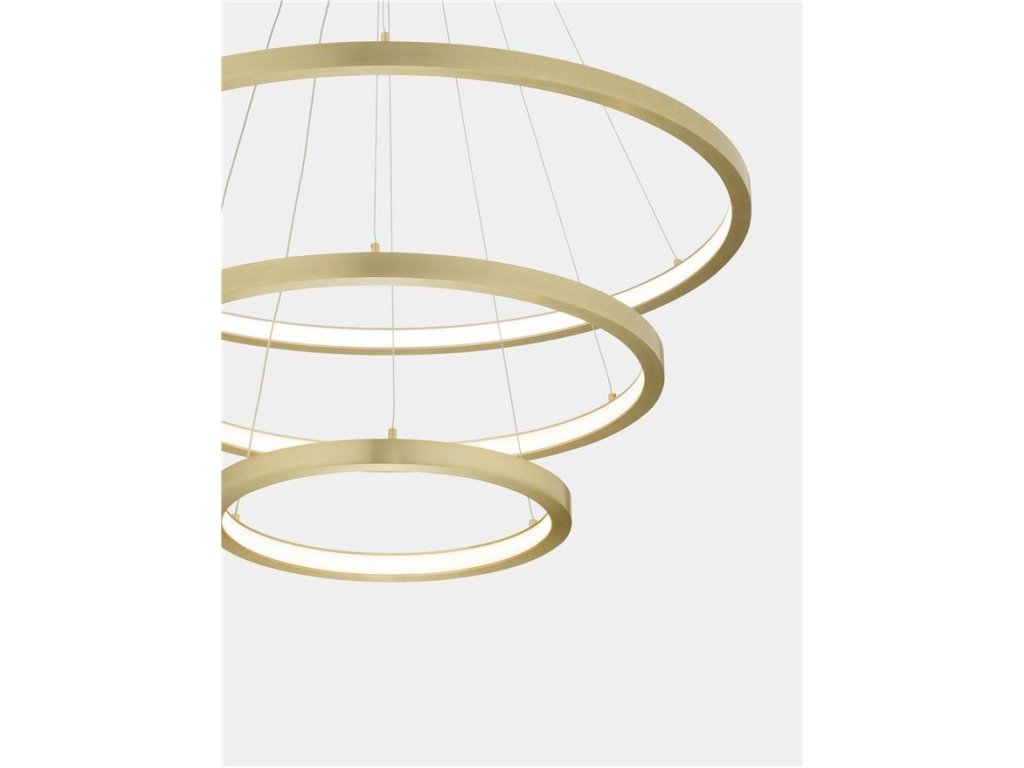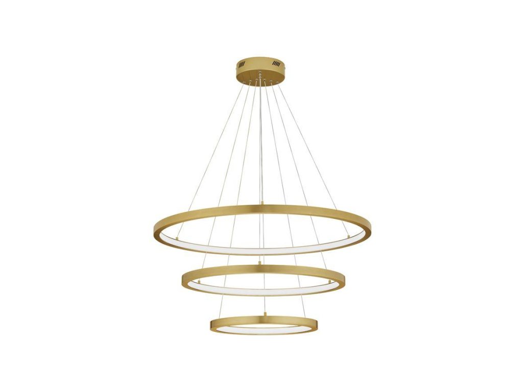 Závesné svietidlo EMPATIA, 108W je k dispozícii v zlatej farbe. Svietidlo je vyrobené z hliníka. Rozmery svietidla sú 80x120 cm. Integrovaný LED zdroj vydáva teplé biele svetlo (3000K). Svietivosť zdroja je 2244 lúmenov a je stmievateľný systémom TRIAC. Svietidlo odporúčame nad jedálenský stôl, do obývacej izby alebo spálne.