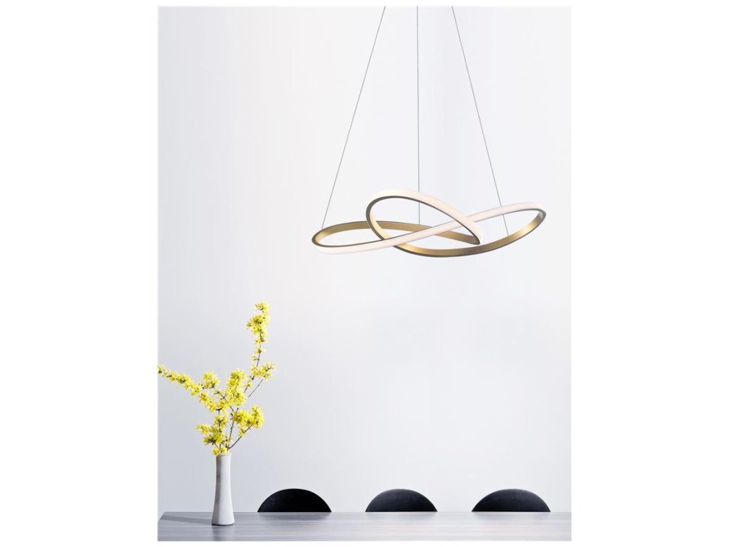 Závesné svietidlo FUSION, 53W je k dispozícii v zlatej a bielej farbe. Svietidlo je vyrobené z hliníka a akrylu. obývacej izby alebo spálne.