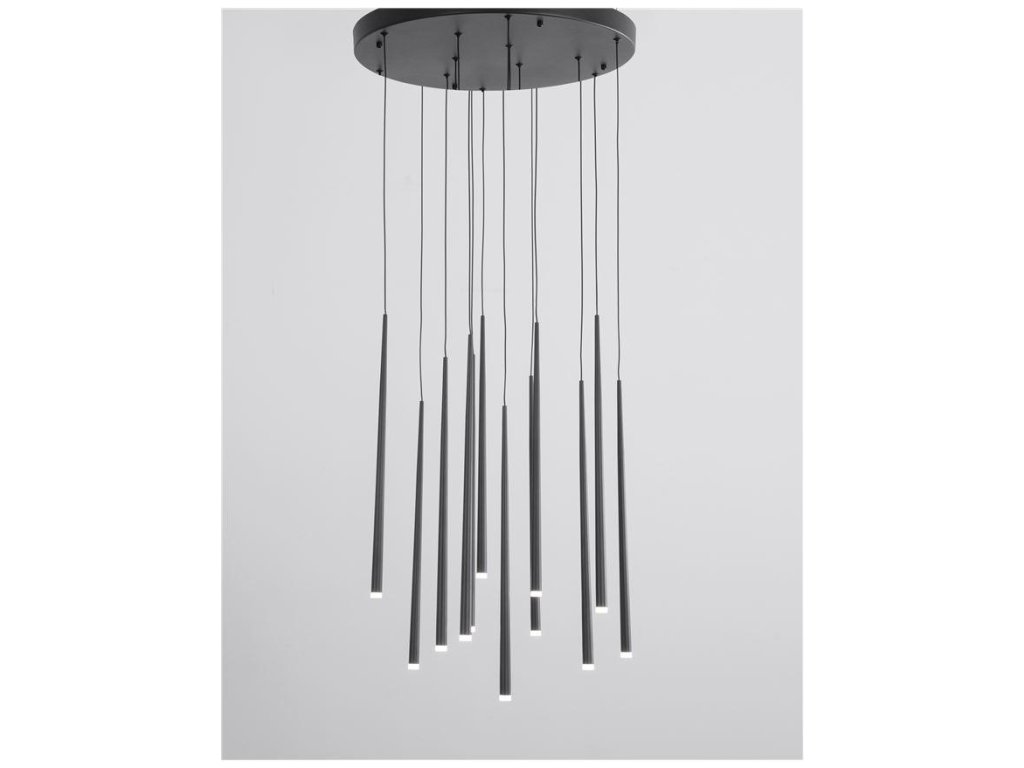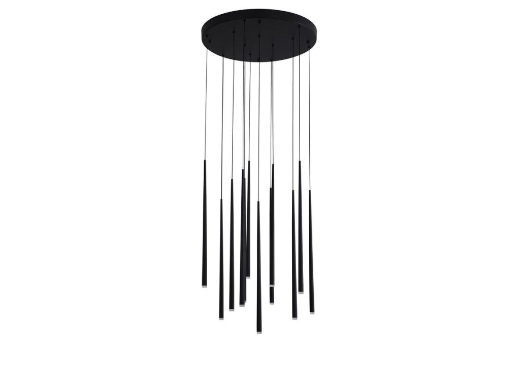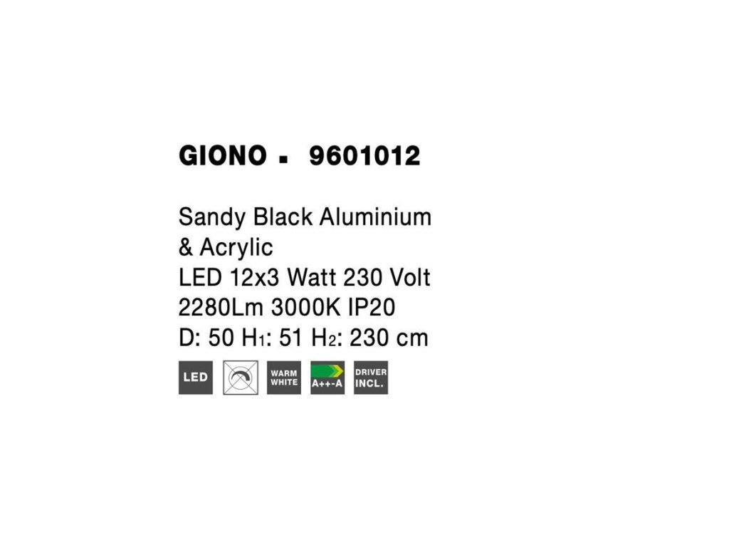 Závesné svietidlo GIONO, 12x3W je k dispozícii v čiernej farbe. Svietidlo je vyrobené z hliníka a akrylu. Rozmery svietidla sú 50x230 cm. Integrovaný LED zdroj vydáva teplé biele svetlo (3000K). Svietivosť zdroja je 2280 lúmenov a je nestmievateľný. Svietidlo odporúčame nad jedálenský stôl, do obývacej izby alebo spálne.