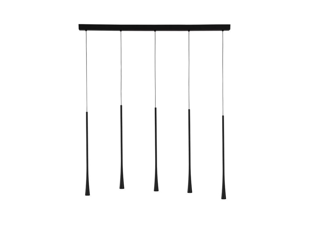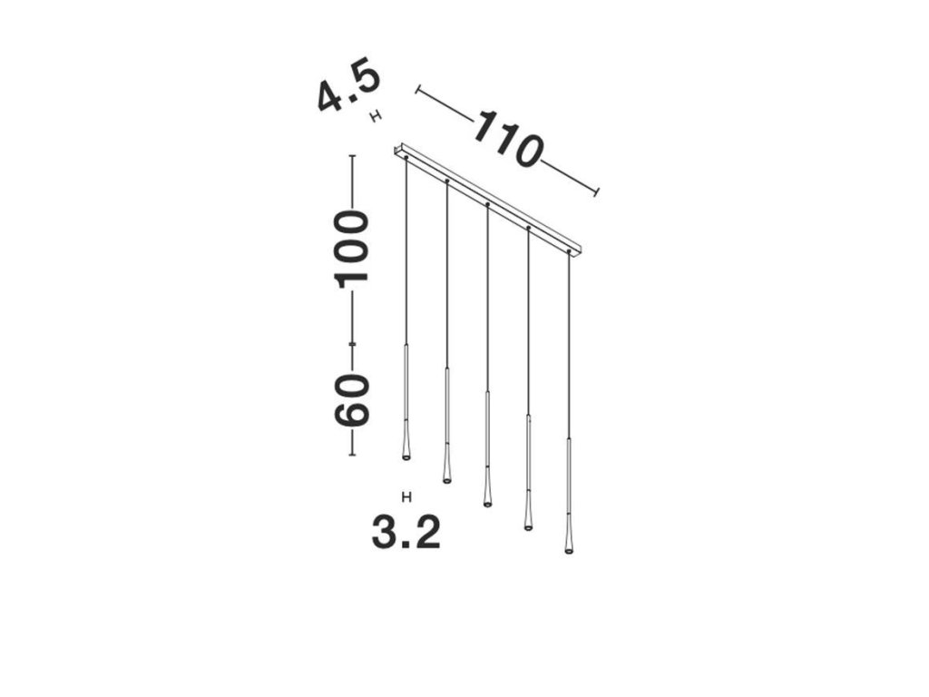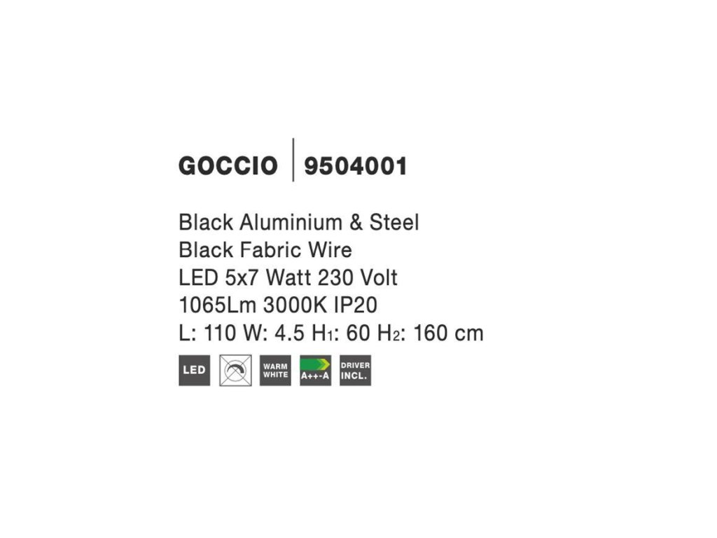 Závesné svietidlo GOCCIO, 5x7W je k dispozícii v čiernej farbe. Svietidlo je vyrobené z hliníka. Rozmery svietidla sú 110x160 cm. Integrovaný LED zdroj vydáva teplé biele svetlo (3000K). Svietivosť zdroja je 1065 lúmenov a je nestmievateľný. Svietidlo odporúčame nad jedálenský stôl, do obývacej izby alebo spálne.