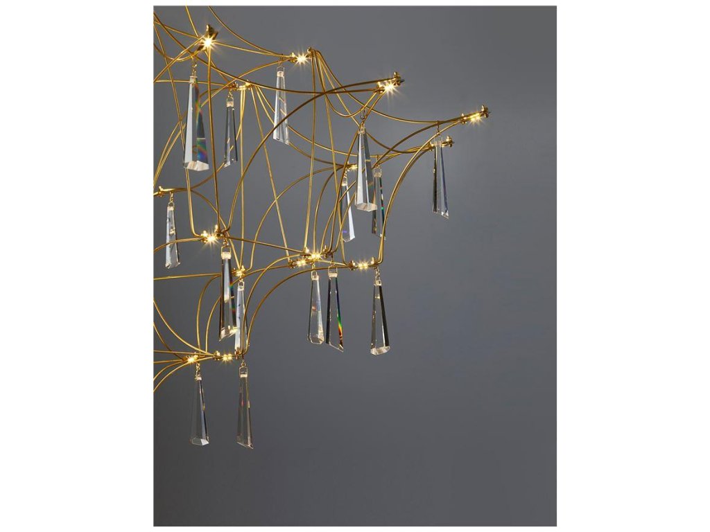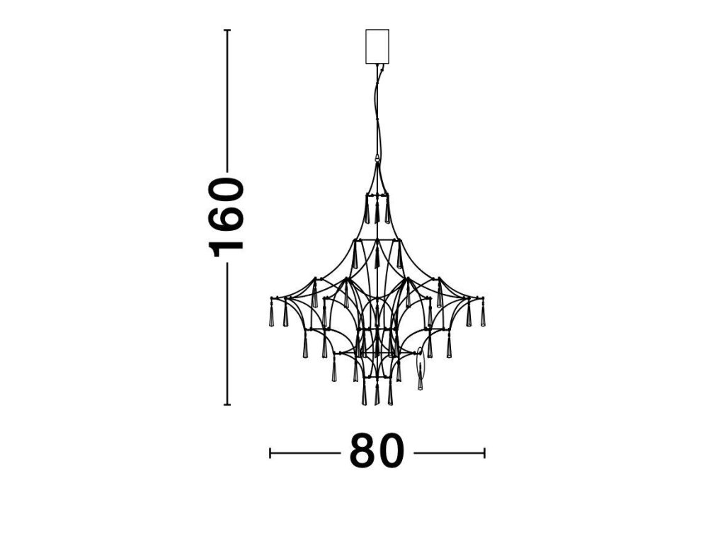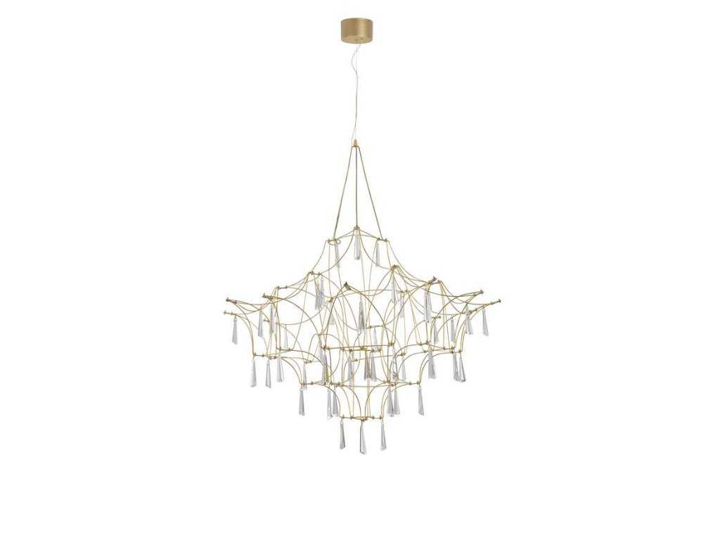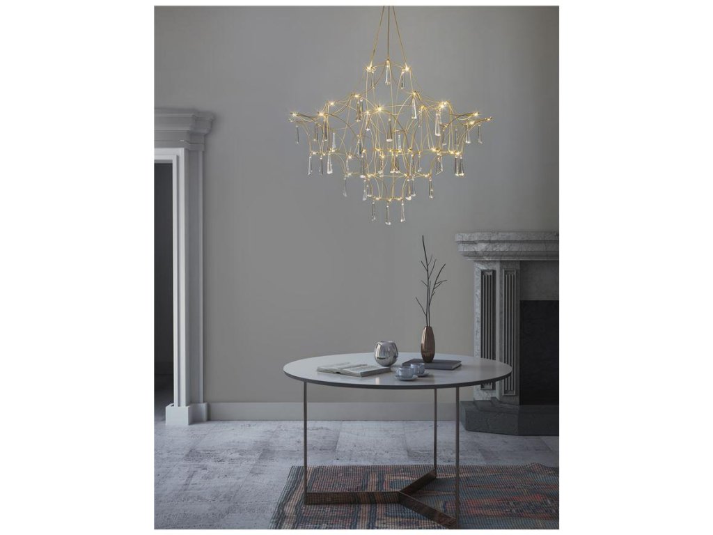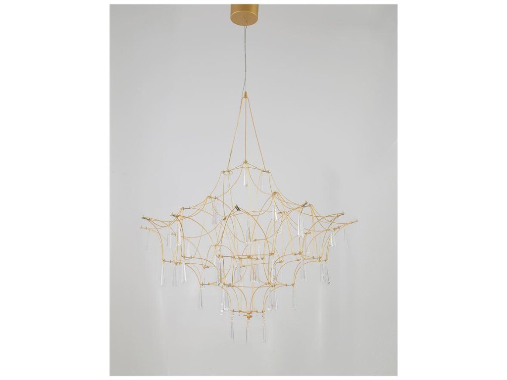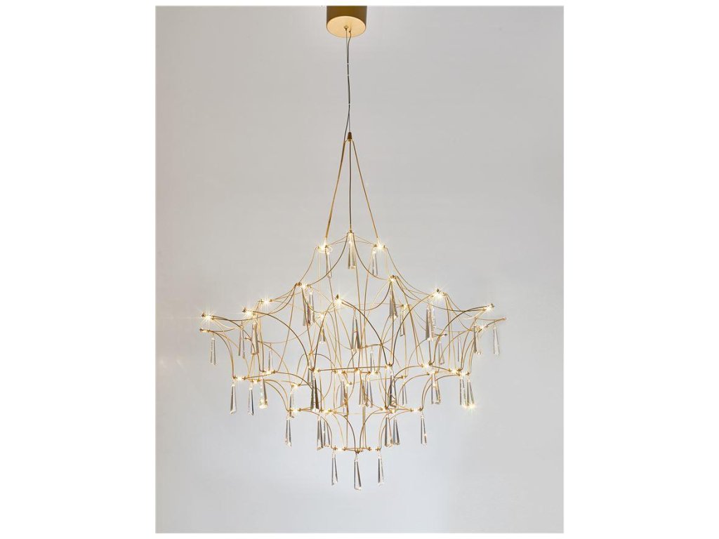 Závesné svietidlo GORO, 20W je k dispozícii v zlatej farbe. Svietidlo je vyrobené z kovu a krištáľu. Rozmery svietidla sú 80x160 cm. Integrovaný LED zdroj vydáva teplé biele svetlo (3000K). Svietivosť zdroja je 2000 lúmenov a je nestmievateľný. Svietidlo odporúčame nad jedálenský stôl, do obývacej izby alebo spálne.