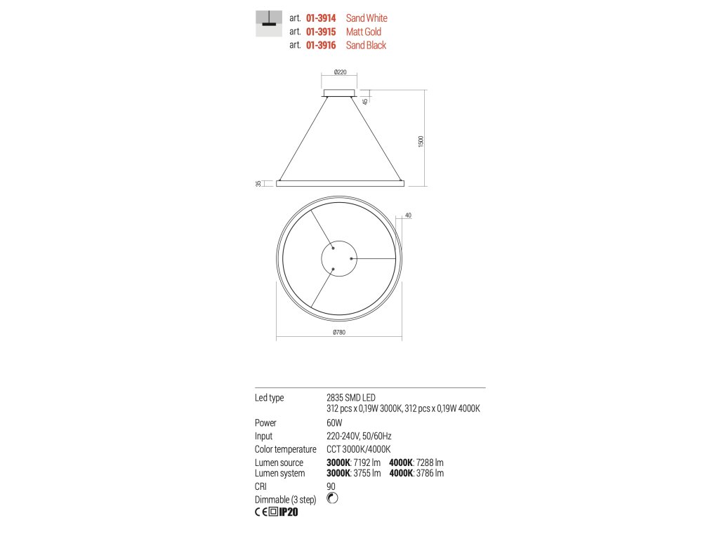 - svietidlo je vyrobené z guľatej kovovej základne a na troch lankách je zavesený hliníkový kruh