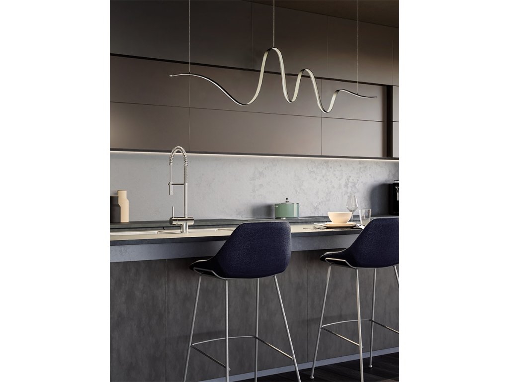 Interiérové designové závesné svietidlo IMPULS vybavené SMD LED diódami, kovová a hliníková konštrukcia elektrostaticky lakovaná v pieskovo čiernej, bielej alebo zlatej farbe a biely PVC difúzor. Dĺžka svietidla je 160 cm. Svietidlo sa skvele hodí do obývacej izby alebo spálne.