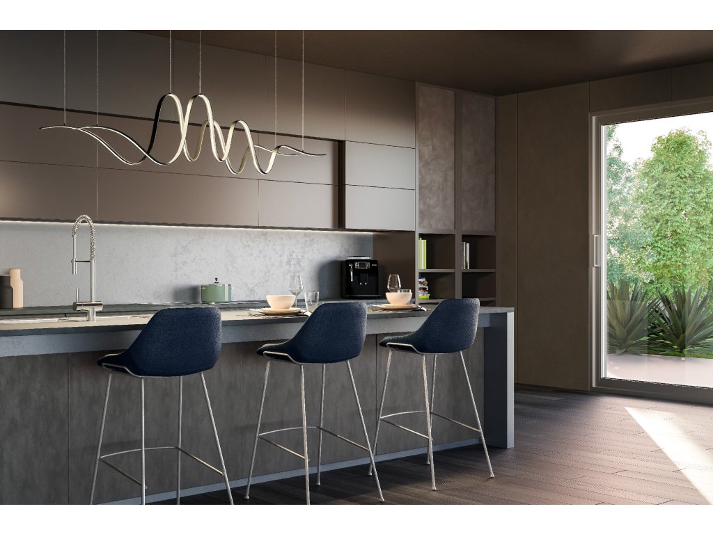 Interiérové designové závesné svietidlo IMPULS vybavené SMD LED diódami, kovová a hliníková konštrukcia elektrostaticky lakovaná v pieskovo čiernej, bielej alebo zlatej farbe a biely PVC difúzor. Dĺžka svietidla je 171 cm. Svietidlo sa skvele hodí do obývacej izby alebo spálne.