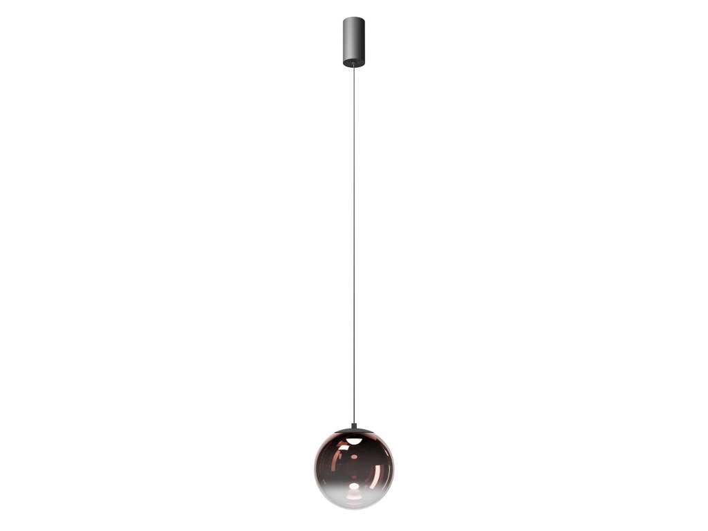 Závesné svietidlo do interiéru s jednou COB LED, s kovovou a hliníkovou konštrukciou lakovanou matnou čiernou farbou, a difúzorom z lesklého transparentného, kávového, dymového alebo dichroického fúkaného skla.