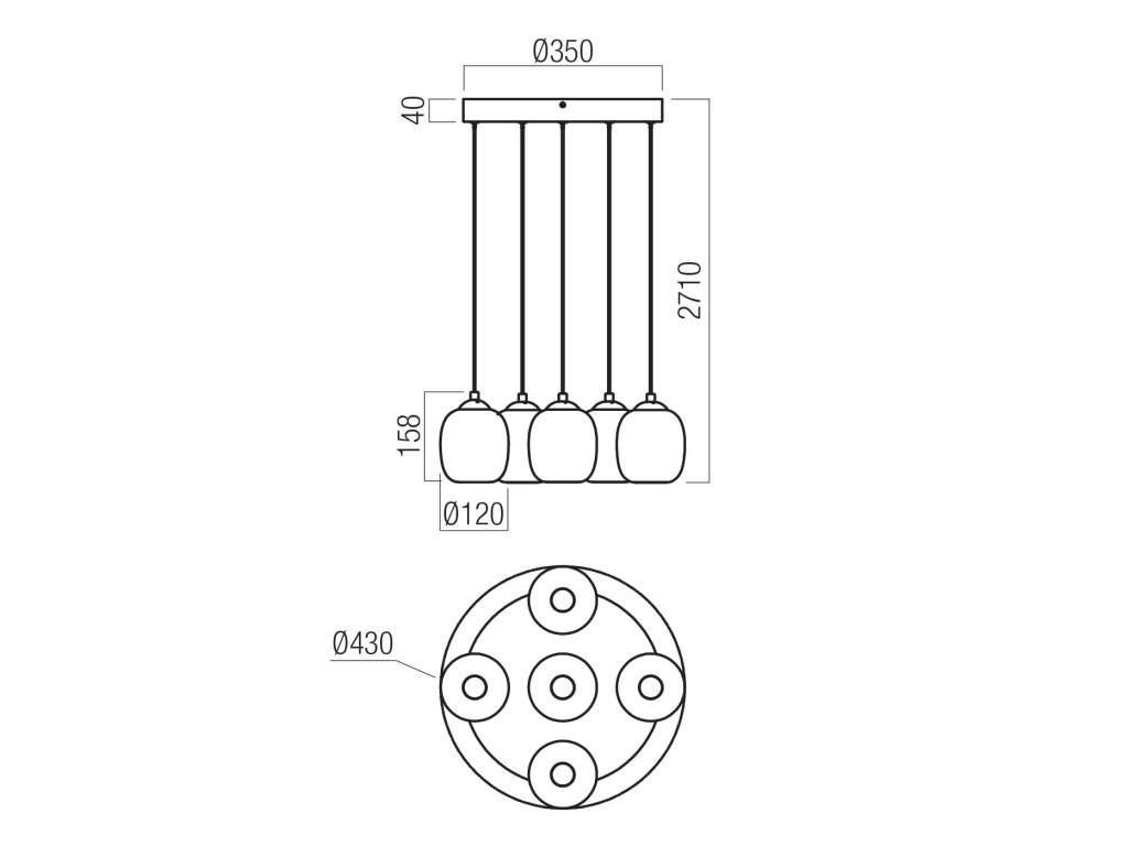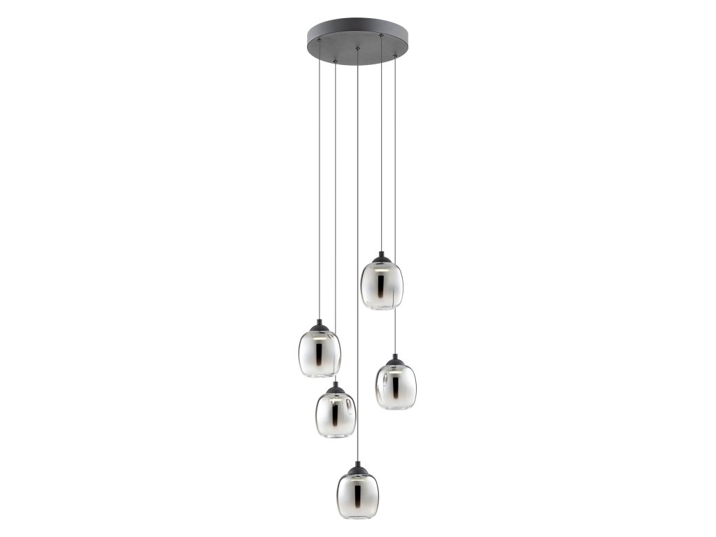 Závesné stmievateľné svietidlo do interiéru, osadené SMD LED diódami, kovová konštrukcia v pieskovo čiernej farbe, difúzory z dymového gradientného skla.