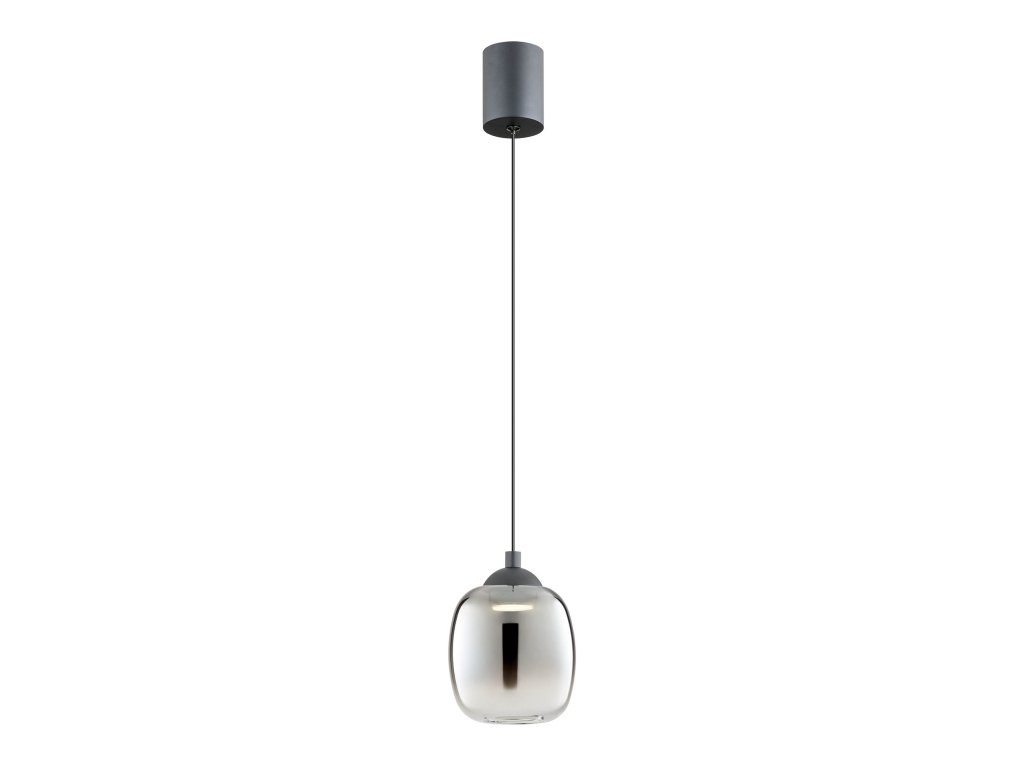 Závesné svietidlo do interiéru, osadené SMD LED diódami, kovová konštrukcia v pieskovo čiernej farbe, sklenený difúzor s dymovým gradientom.