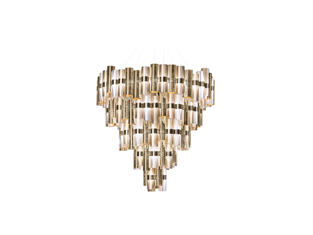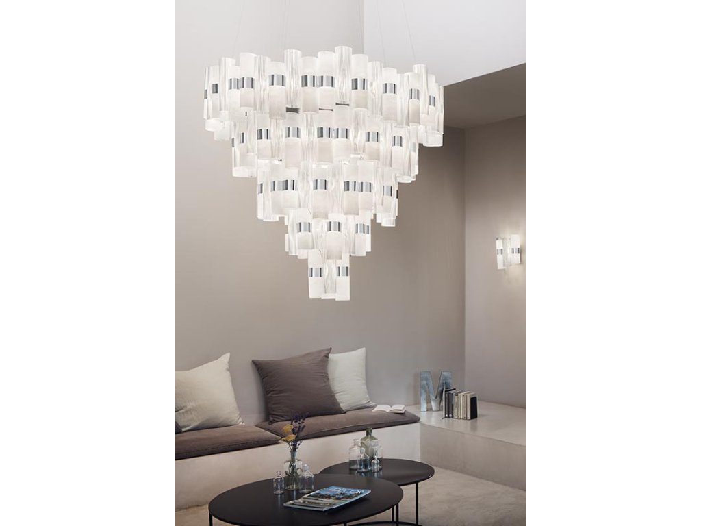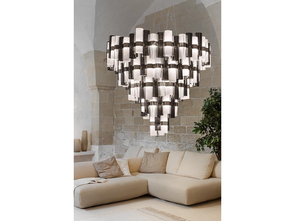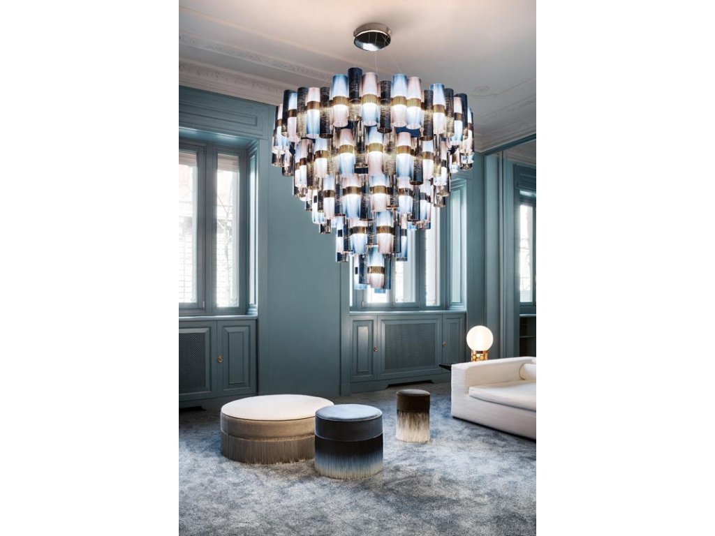 - závesné svietidlo La Lonna, ktoré sa vyznačuje sofistikovanými chromatickými odtieňmi, metalickými povrchovými úpravami a efektmi inšpirovanými textilom, vám umožňuje osvetliť a ozdobiť interiéry s všestrannosťou a eleganciou.