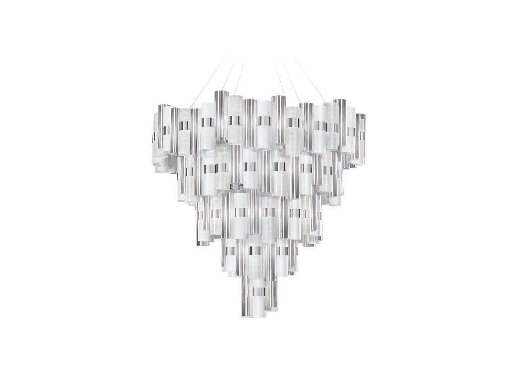 - La Lollona 5 má priemer 130 cm a 132 unikátnych techno-polymérových valcov Slamp