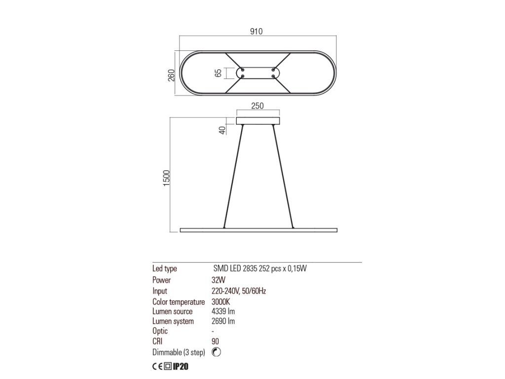 - vyrobené z hliníkovej a kovovej konštrukcie, v oválnom tvare, ktorý je zavesený na štyroch lankách.