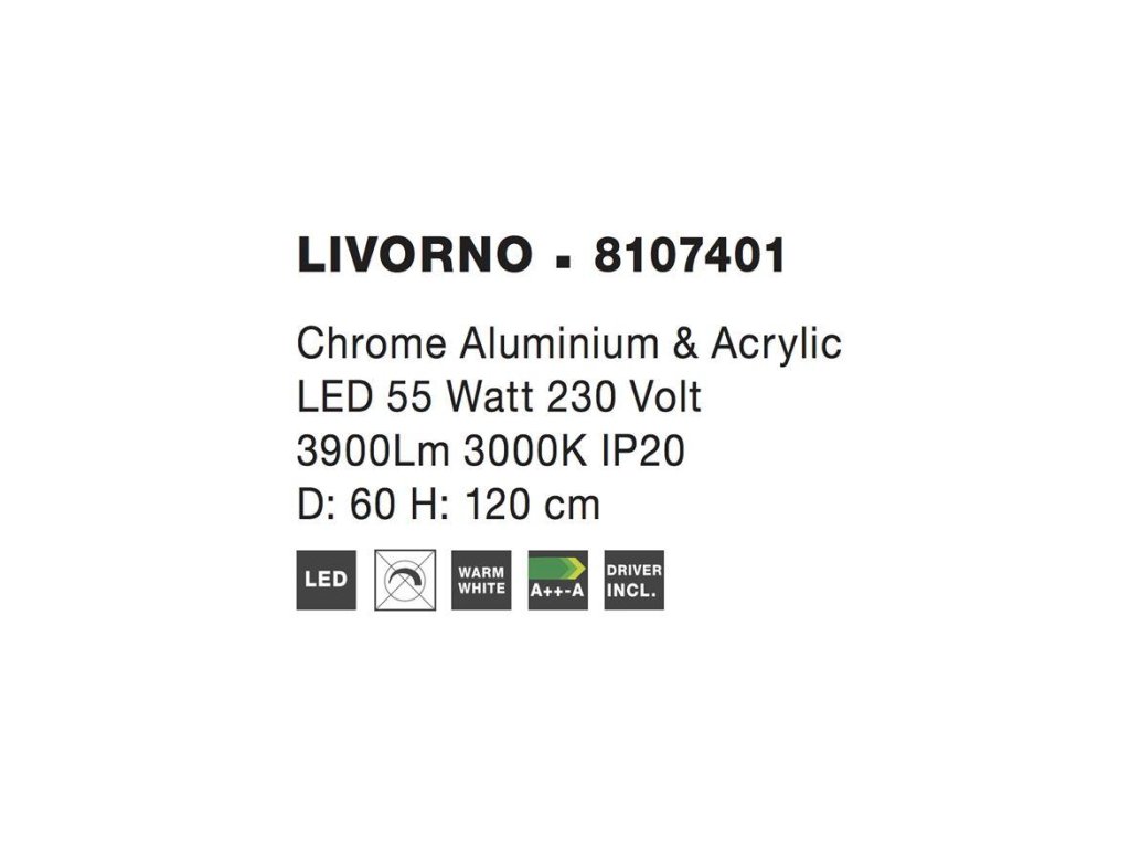 Závesné svietidlo LIVORNO, 55W je k dispozícii v chrómovej farbe. Svietidlo je vyrobené z hliníka a akrylu. Rozmery svietidla sú 60x120 cm. Integrovaný LED zdroj vydáva teplé biele svetlo (3000K). Svietivosť zdroja je 3900 lúmenov a je nestmievateľný. Svietidlo odporúčame nad jedálenský stôl, do obývacej izby alebo spálne.