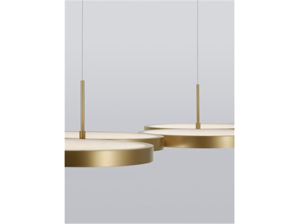 Závesné svietidlo MAGNUS, 41W je k dispozícii v čiernej a mosadznej farbe. Svietidlo je vyrobené z hliníka. Rozmery svietidla sú 84x120 cm. Integrovaný LED zdroj vydáva teplé biele svetlo (3000K). Svietivosť zdroja je 2000/2300 lúmenov a je stmievateľný systémom TRIAC. Svietidlo odporúčame nad jedálenský stôl, do obývacej izby alebo spálne.