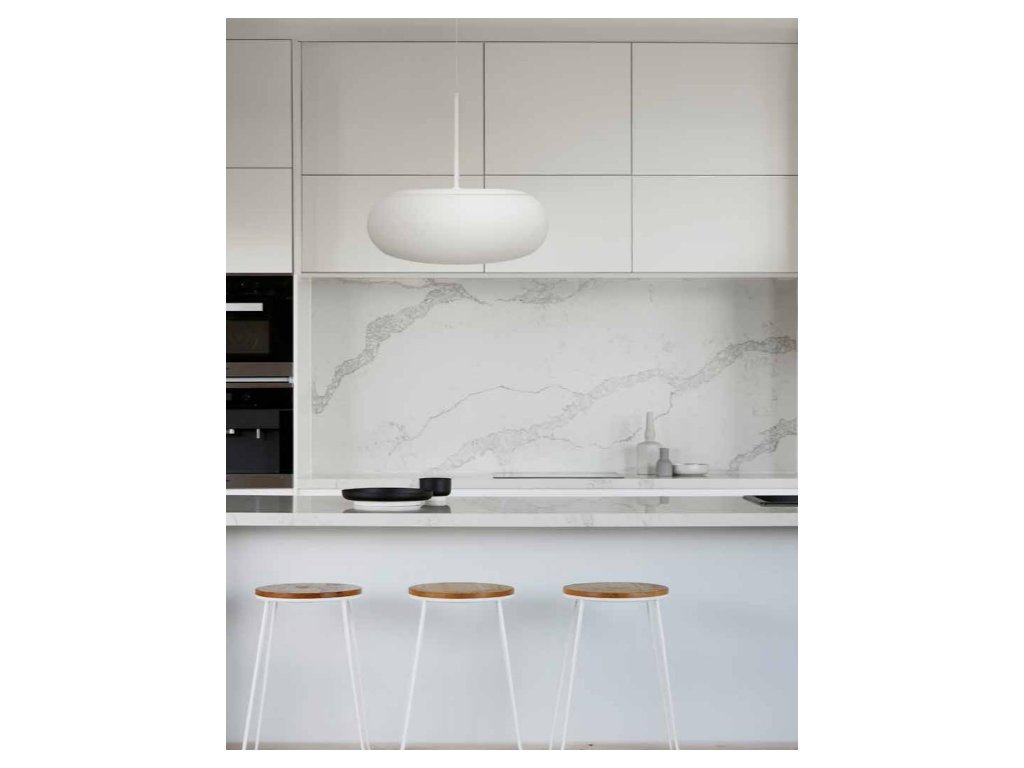 Stropné oválne LED svietidlo MEDA, ktoré osvetlí Váš priestor aj strop. Svietidlo má snehovo biele akrylové tienidlo s kombináciu kovových detailov z bieleho matu. Záves pri svietidle je možné skrátiť. Svietidlo môžete kombinovať s nástenným aj stropným svietidlom z rovnakej kolekcie.
