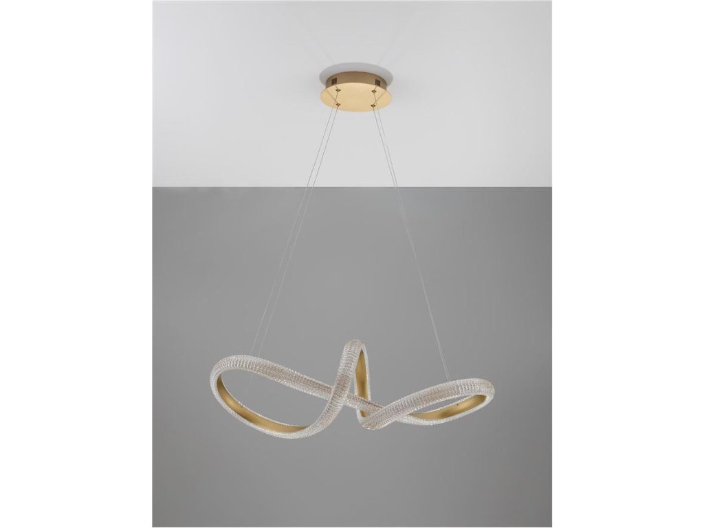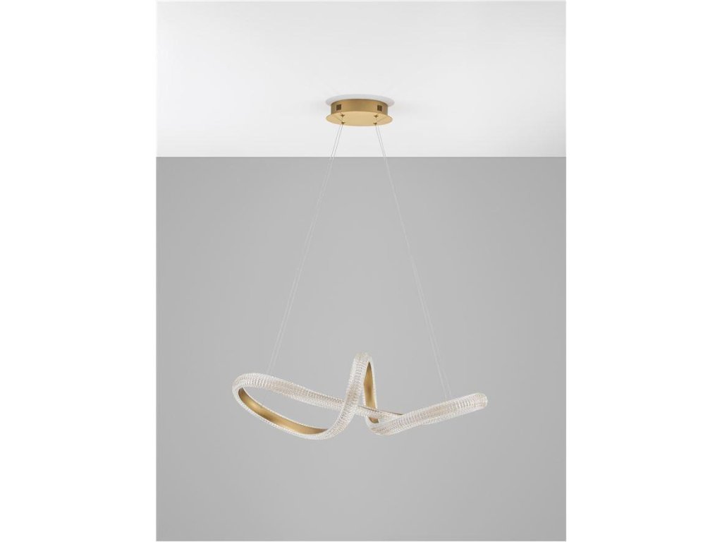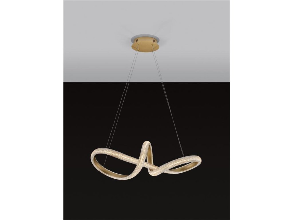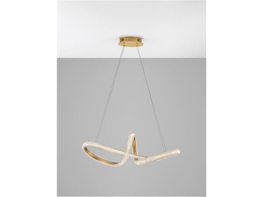 Závesné svietidlo MEDORA, 42W je k dispozícii v zlatej farbe. Svietidlo je vyrobené z hliníka a akrylu. Rozmery svietidla sú 75,5x120 cm. Integrovaný LED zdroj vydáva teplé biele svetlo (3000K). Svietivosť zdroja je 3600 lúmenov a je stmievateľný systémom TRIAC. Svietidlo odporúčame nad jedálenský stôl, do obývacej izby alebo spálne.