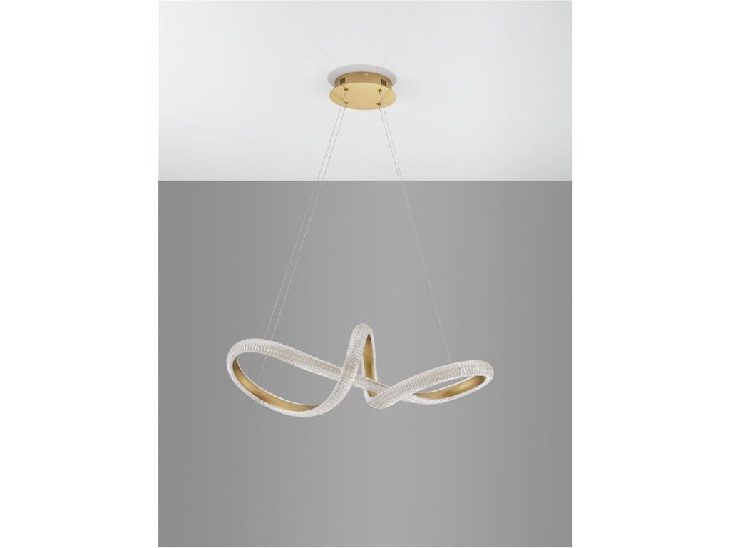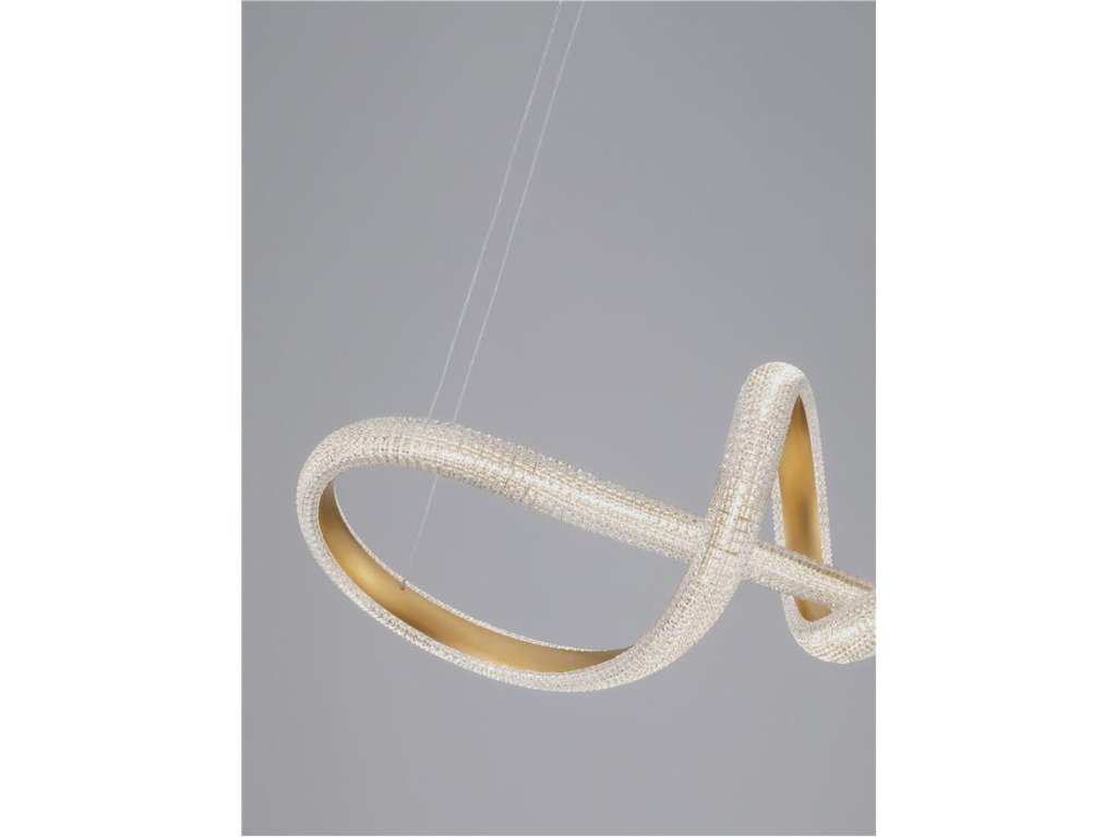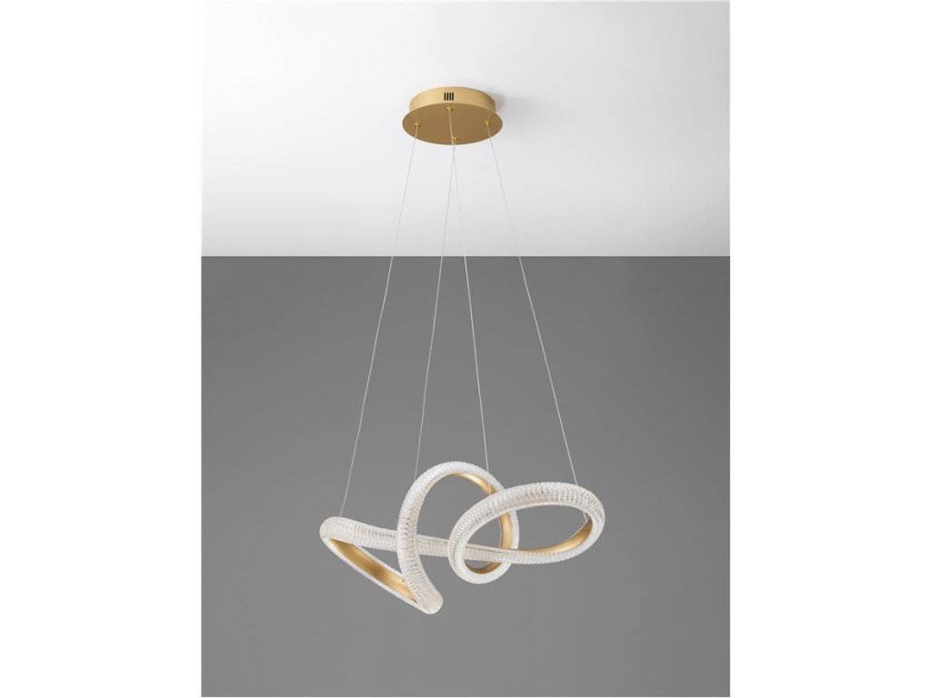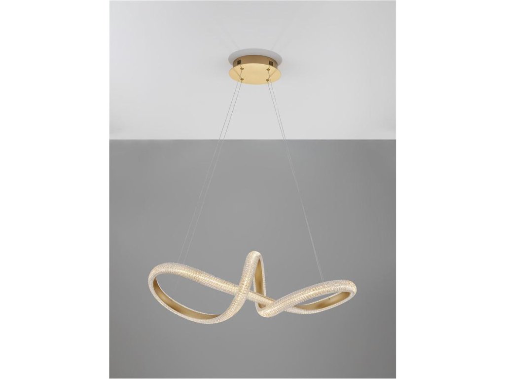 Závesné svietidlo MEDORA, 42W je k dispozícii v zlatej farbe. Svietidlo je vyrobené z hliníka a akrylu. Rozmery svietidla sú 75,5x120 cm. Integrovaný LED zdroj vydáva teplé biele svetlo (3000K). Svietivosť zdroja je 3600 lúmenov a je stmievateľný systémom TRIAC. Svietidlo odporúčame nad jedálenský stôl, do obývacej izby alebo spálne.