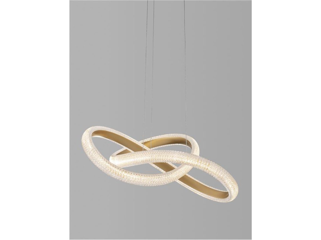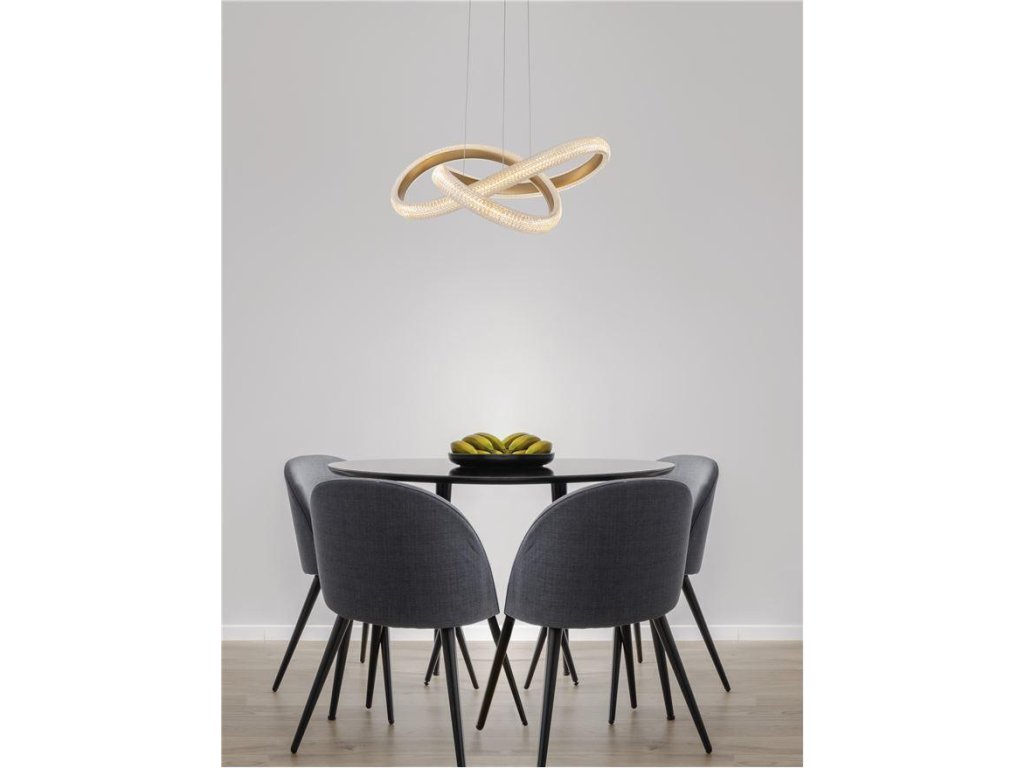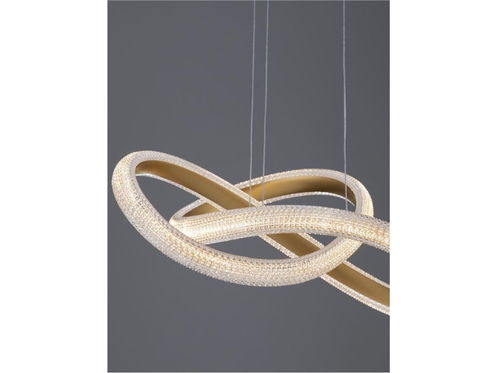 Závesné svietidlo MEDORA, 42W je k dispozícii v zlatej farbe. Svietidlo je vyrobené z hliníka a akrylu. Rozmery svietidla sú 52,5x120 cm. Integrovaný LED zdroj vydáva teplé biele svetlo (3000K). Svietivosť zdroja je 3600 lúmenov a je stmievateľný systémom TRIAC. Svietidlo odporúčame nad jedálenský stôl, do obývacej izby alebo spálne.