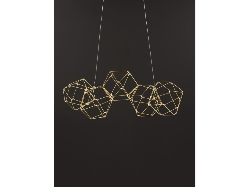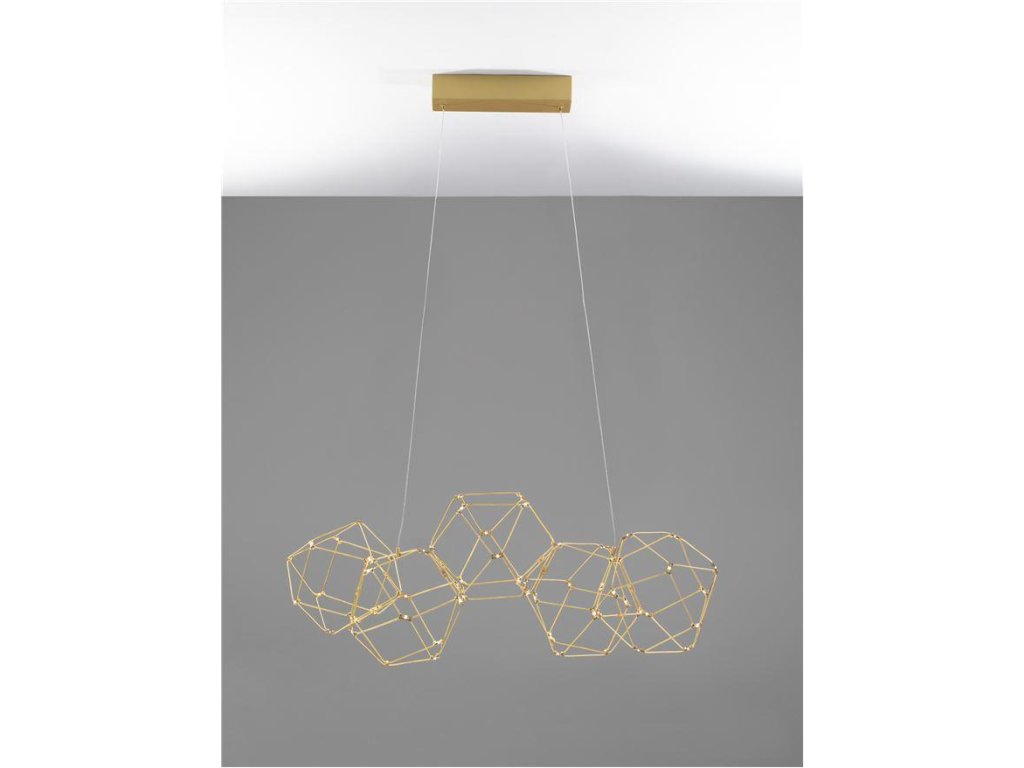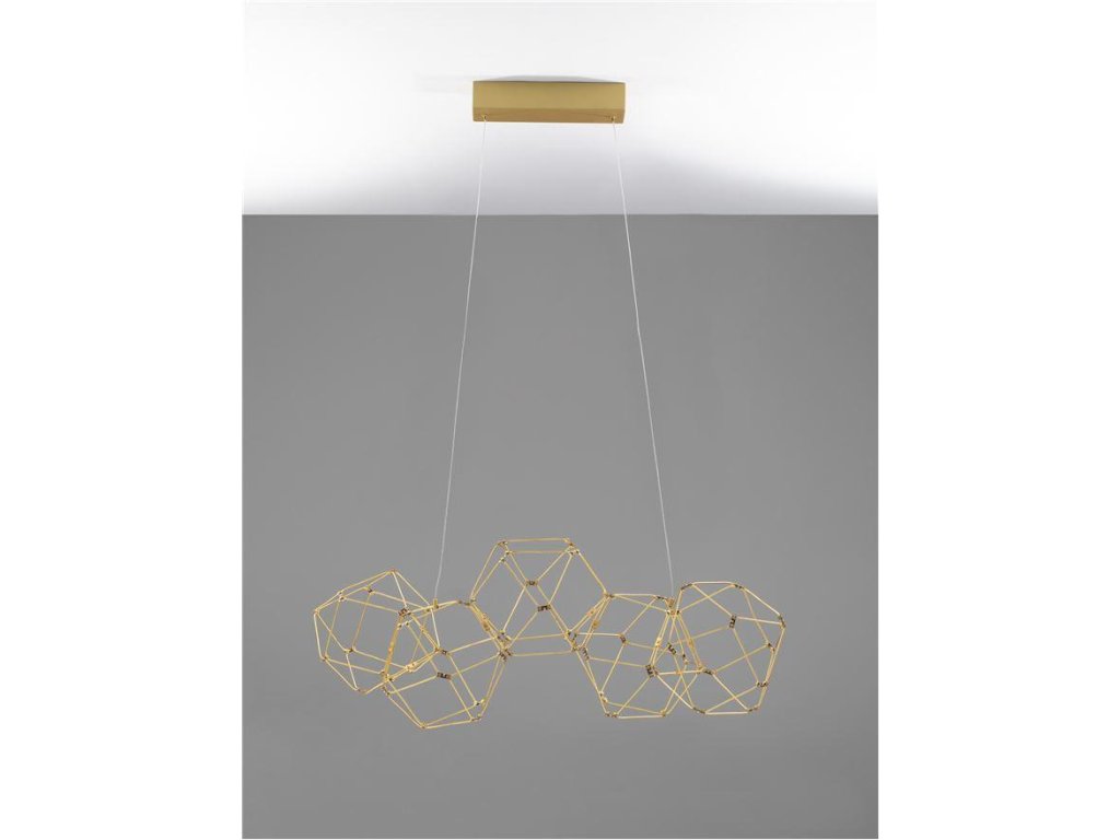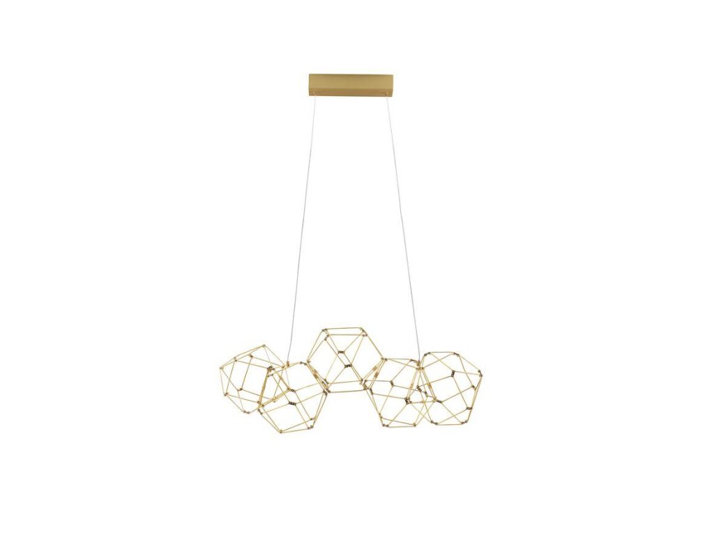 Závesné LED svietidlo NEBULA, 22W je k dispozícii v zlatej farbe. Svietidlo je vyrobené z kovu. Rozmery svietidla sú 84x110 cm. Integrovaný LED zdroj vydáva teplé biele svetlo (3000K), ktoré je nestmievateľné. Svietidlo odporúčame nad jedálenský stôl, do obývacej izby alebo spálne.