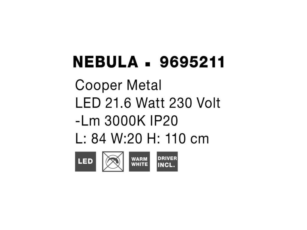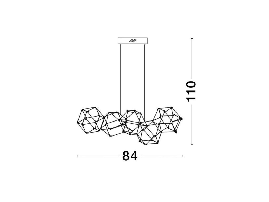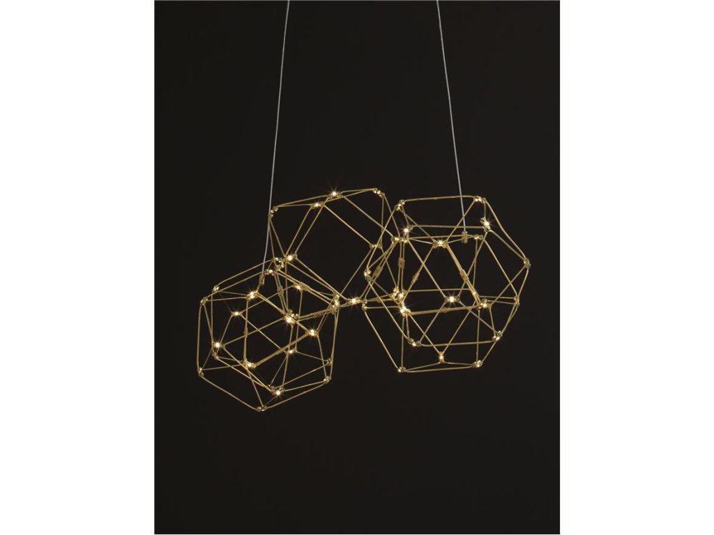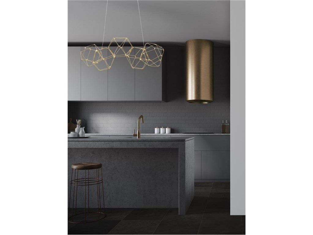 Závesné LED svietidlo NEBULA, 22W je k dispozícii v zlatej farbe. Svietidlo je vyrobené z kovu. Rozmery svietidla sú 84x110 cm. Integrovaný LED zdroj vydáva teplé biele svetlo (3000K), ktoré je nestmievateľné. Svietidlo odporúčame nad jedálenský stôl, do obývacej izby alebo spálne.
