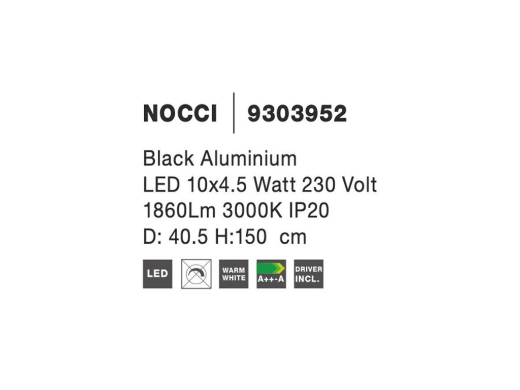 Závesné LED svietidlo NOCCI, 10x4, 5W je k dispozícii v čiernej farbe. Svietidlo je vyrobené z hliníka. Rozmery svietidla sú 40,5x150 cm. Integrovaný LED zdroj vydáva teplé biele svetlo (3000K). Svietivosť zdroja je 1860 lúmenov a je nestmievateľný. Svietidlo odporúčame nad jedálenský stôl, do obývacej izby alebo spálne.