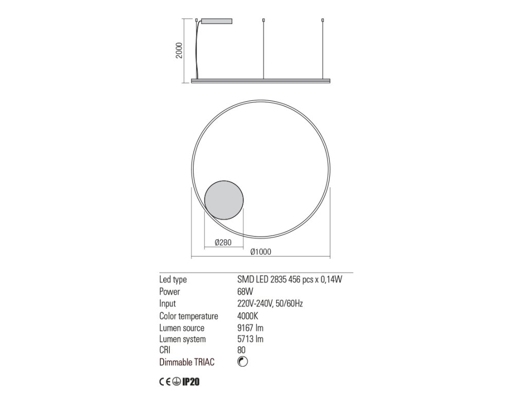 Závesné LED svietidlo ORBIT ø 80 cm, 4000K |