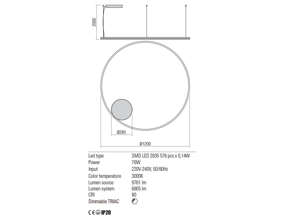 Závesné LED svietidlo ORBIT ø 80 cm, 3000K |
