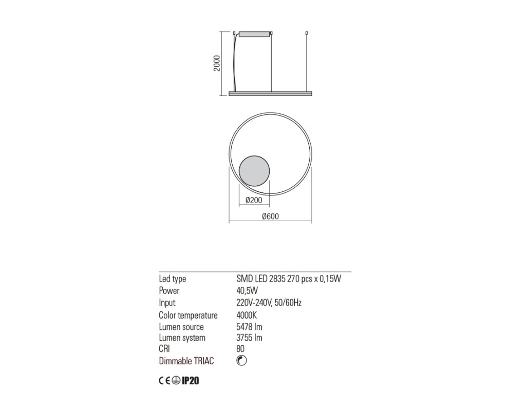 Závesné LED svietidlo ORBIT ø 80 cm, 4000K |
