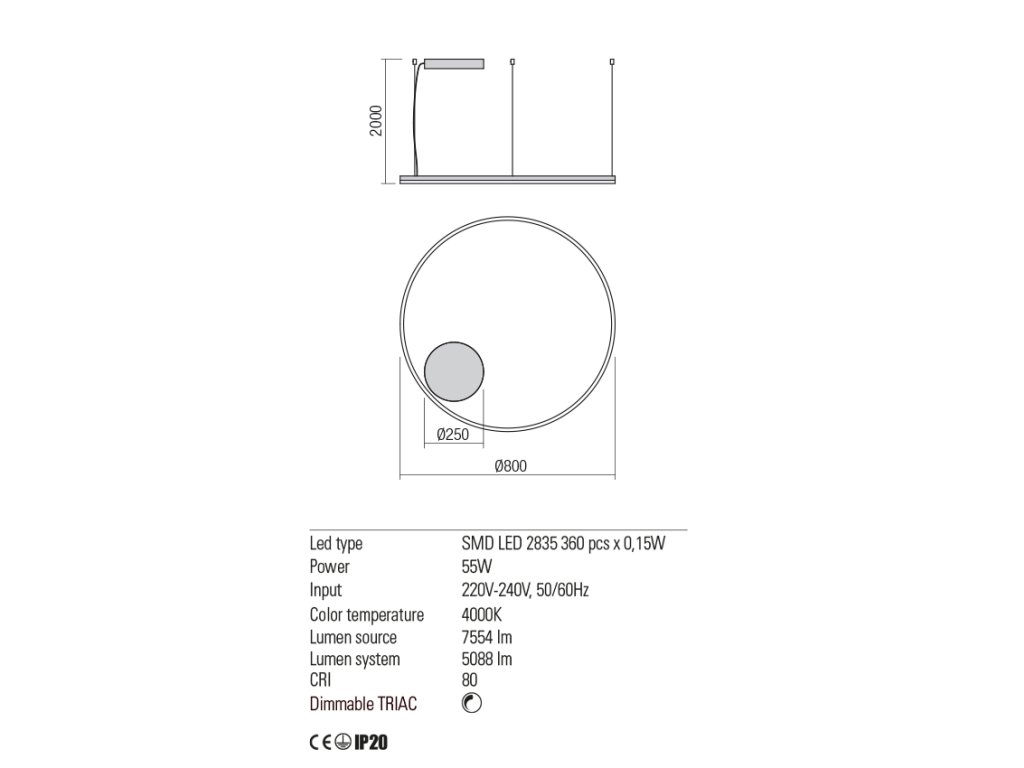 Závesné LED svietidlo ORBIT ø 80 cm, 4000K