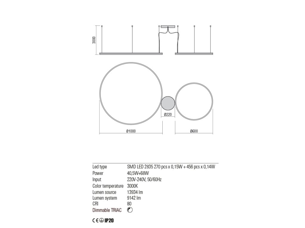 Závesné LED svietidlo ORBIT ø100/ø60 cm, 3000K, 2 kruhy