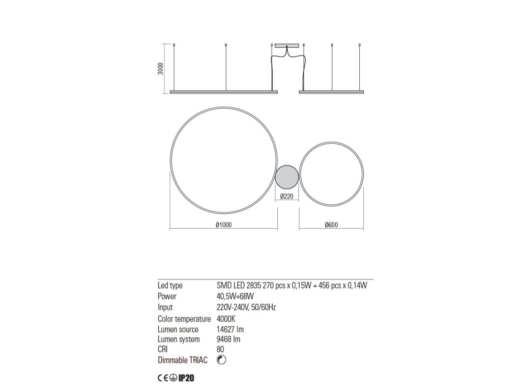 Závesné LED svietidlo ORBIT ø100/ø80/ø60 cm, 4000K, 3 kruhy |