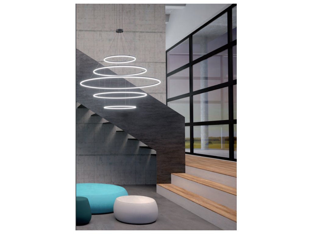 - závesné kruhové LED svietidlo ORBIT sa skladá z 5 kruhov