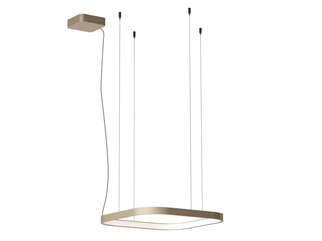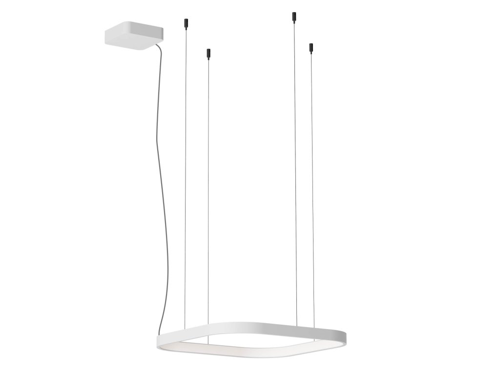 Závesné interiérové svietidlo vybavené SMD LED diódami s možnosťou stmievania DALI stmievačom a ovládanie teploty farieb od teplej bielej po neutrálnu bielu. Konštrukcia hliníka a kovu lakovaná pieskovou čiernou, bielou, niklovou alebo hnedou farbou, difúzor v bielom opálovom silikóne.
