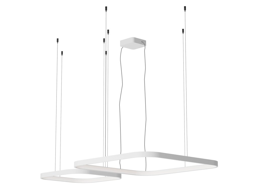 Závesné interiérové svietidlo vybavené SMD LED diódami s možnosťou stmievania DALI stmievačom a ovládanie teploty farieb od teplej bielej po neutrálnu bielu. Konštrukcia hliníka a kovu lakovaná pieskovou čiernou, bielou, niklovou alebo hnedou farbou, difúzor v bielom opálovom silikóne.