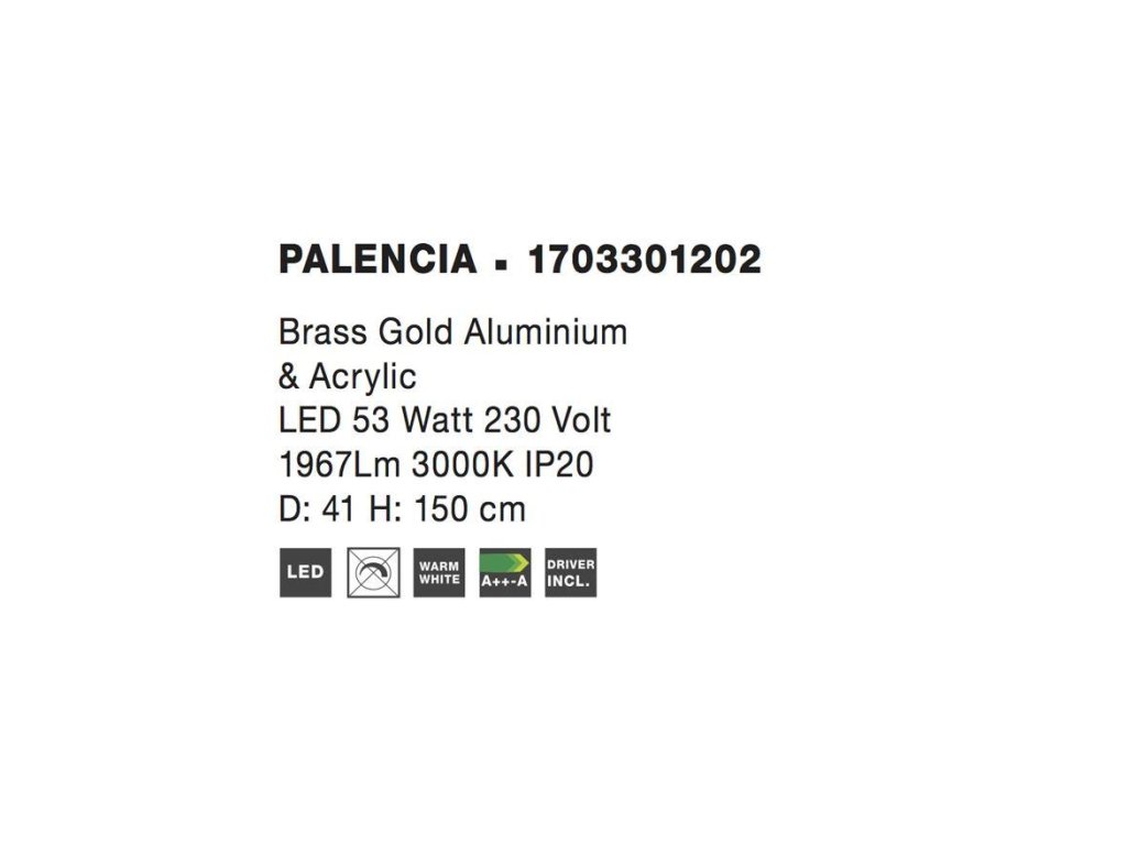 Závesné LED svietidlo PALENCIA, 53W je k dispozícii v zlatej farbe. Svietidlo je vyrobené z hliníka a akrylu. Rozmery svietidla sú 41x150 cm. Integrovaný LED zdroj vydáva teplé biele svetlo (3000K). Svietivosť zdroja je 1967 lúmenov a je nestmievateľný. Svietidlo odporúčame nad jedálenský stôl, do obývacej izby alebo spálne.