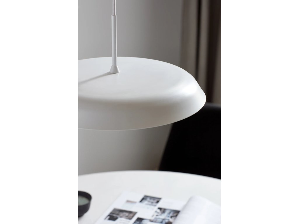 Závesné svietidlo Piso je vyrobené z elegantného bieleho kovu v tenkom dizajne, ktorý spolu s mäkkými tvarmi vyniká svojim minimalistickým designom.