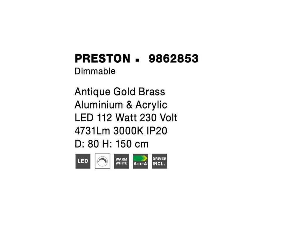 Závesné LED svietidlo PRESTON, 112W 3000K stmievateľné