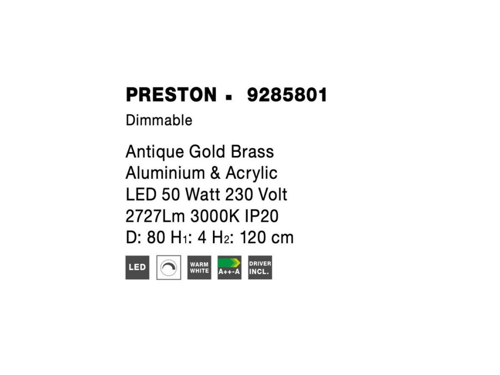 Závesné LED svietidlo PRESTON, 50W 3000K stmievateľné
