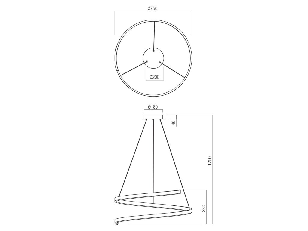 Závesné LED svietidlo SCROLL ø 750mm, 46W