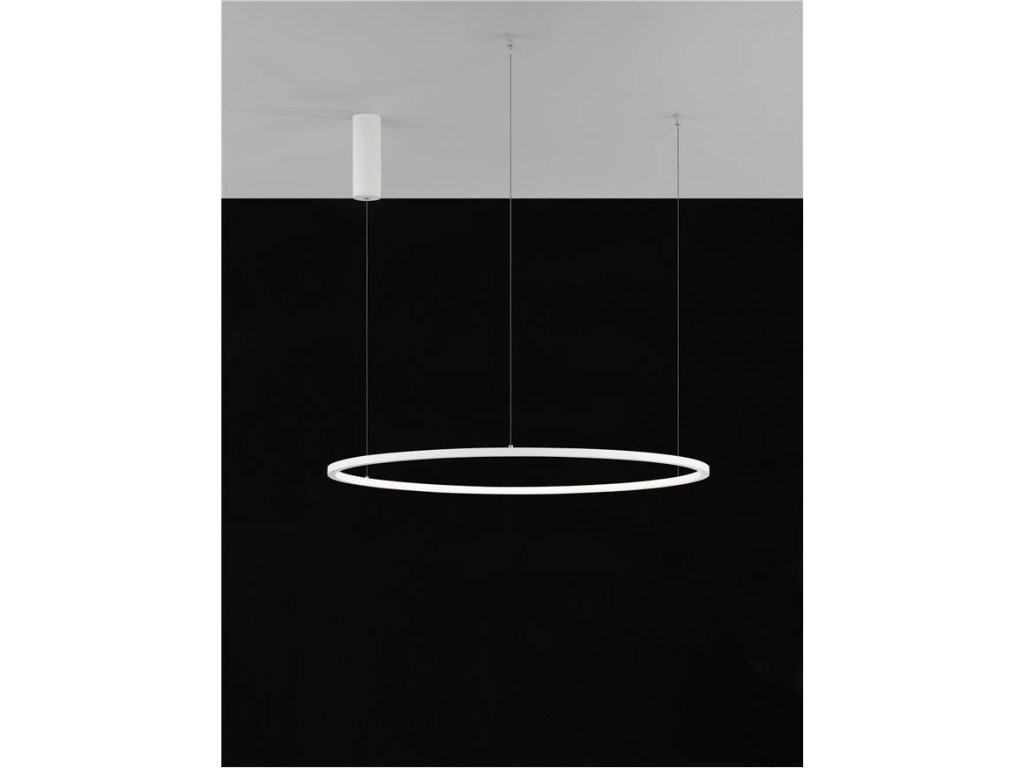 Závesné svietidlo TARQUIN, 48W je k dispozícii v bielej, zlatej, čiernej a striebornej farbe. Svietidlo je vyrobené z hliníka. Rozmery svietidla sú 80x200 cm. Integrovaný LED zdroj vydáva teplé biele svetlo (3000K). Svietivosť zdroja je 2900 lúmenov a je stmievateľný systémom TRIAC. Svietidlo odporúčame nad jedálenský stôl, do obývacej izby alebo spálne.