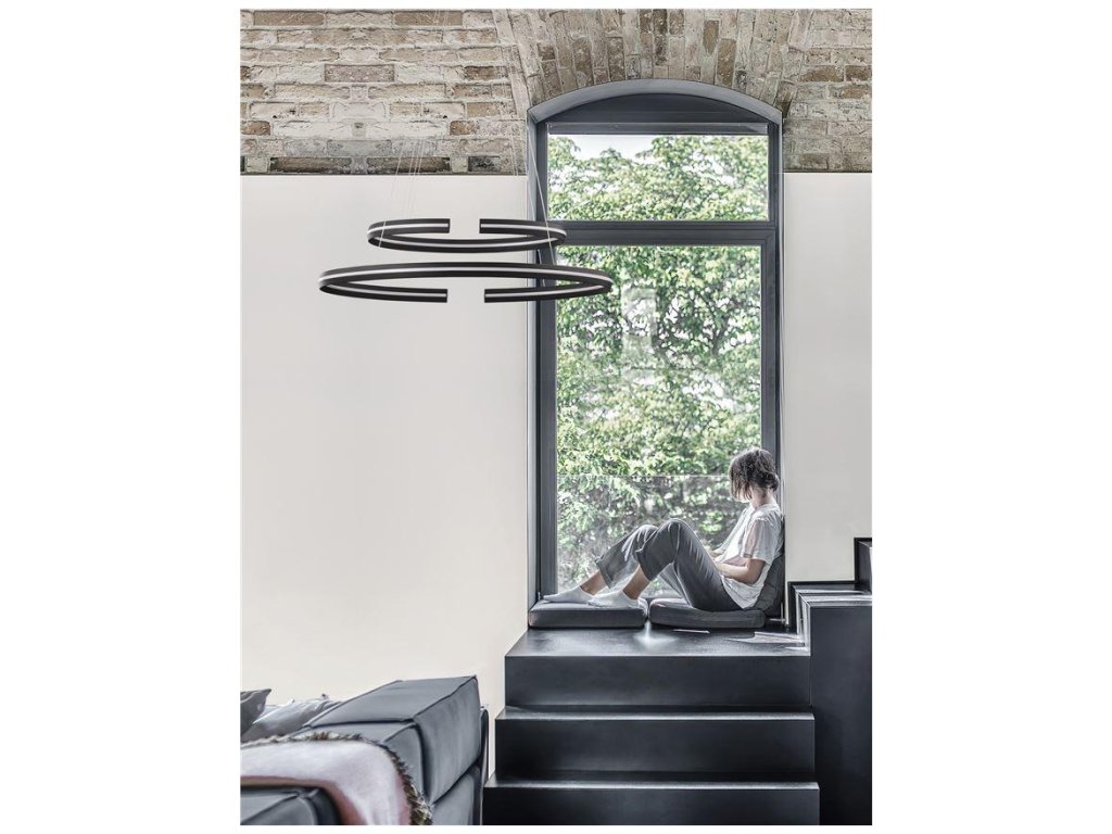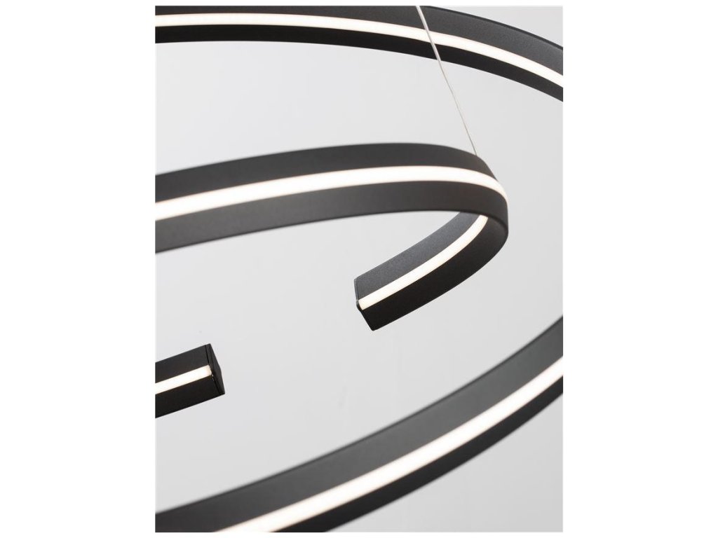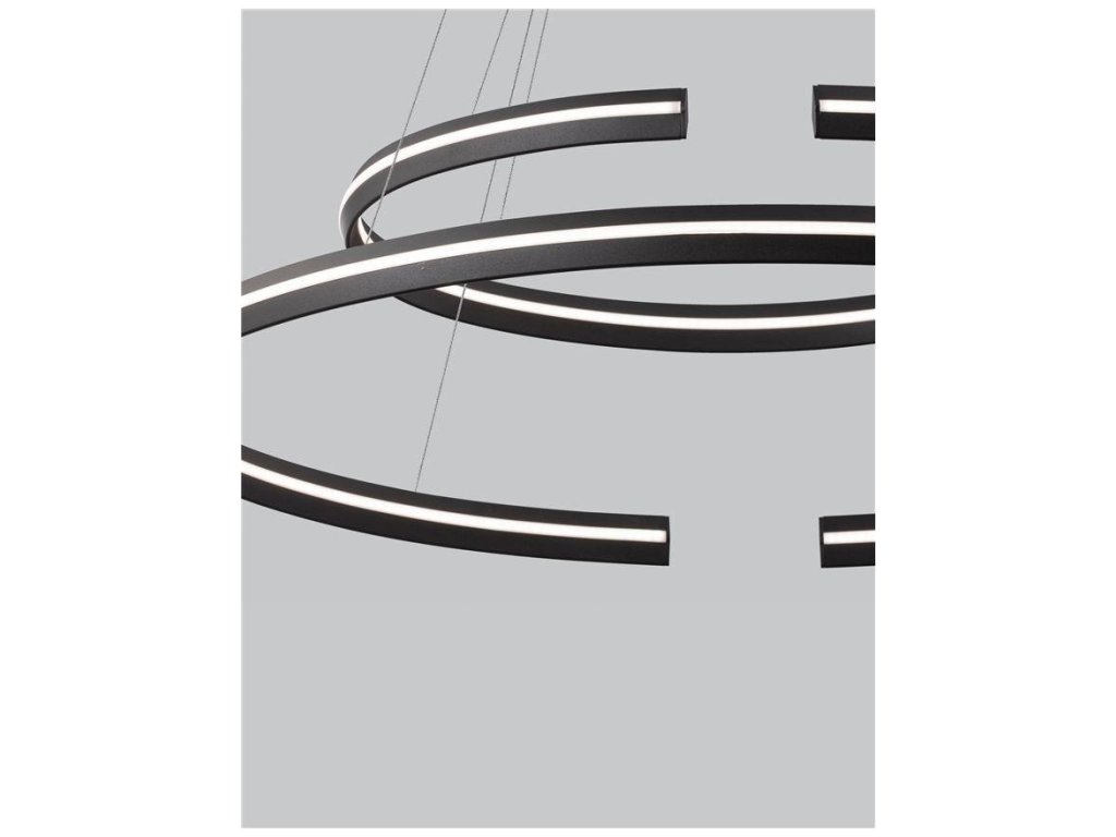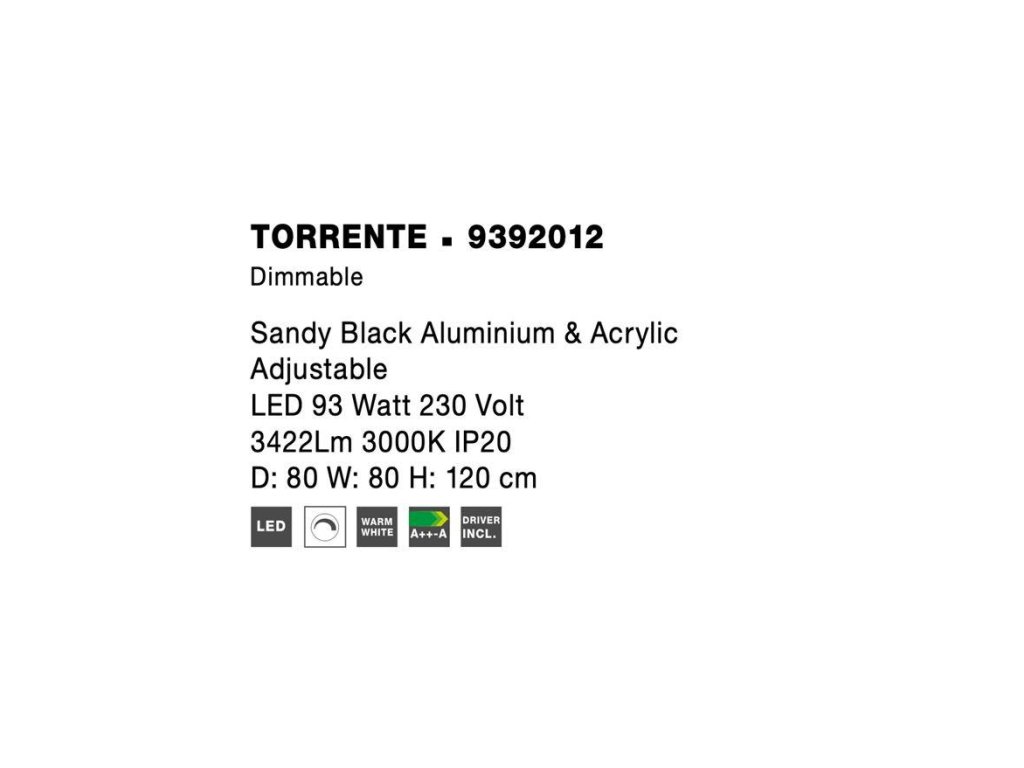 Závesné svietidlo TORRENTE, 93W je k dispozícii v čiernej farbe. Svietidlo je vyrobené z hliníka a akrylu. Rozmery svietidla sú 80x120 cm. Integrovaný LED zdroj vydáva teplé biele svetlo (3000K). Svietivosť zdroja je 3422 lúmenov a je stmievateľný systémom TRIAC. Svietidlo odporúčame nad jedálenský stôl, do obývacej izby alebo spálne.