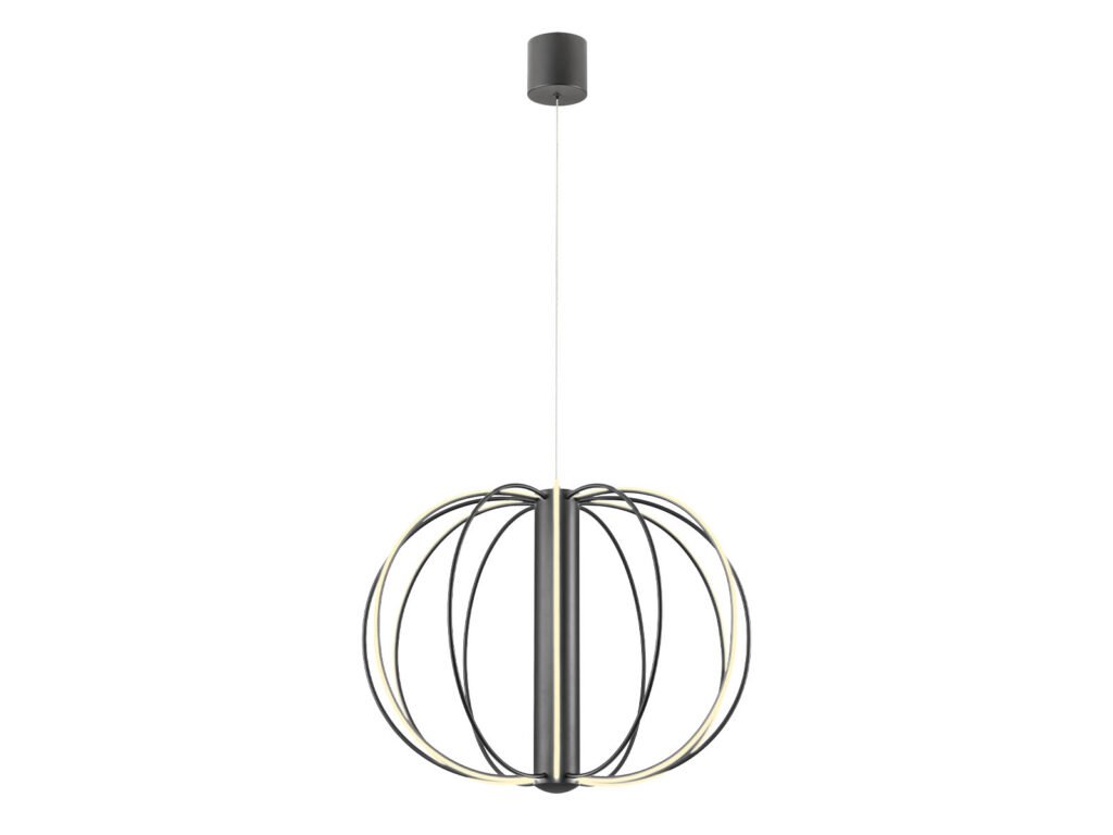 Závesné interiérové svietidlo vybavené LED diódami SMD, TRIAC stmievateľné, konštrukcia z hliníka a kovu lakovaná v matnej čiernej farbe, difúzor z opálového bieleho silikónu.Dodatočné parametre