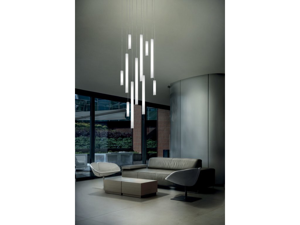 Tu-V LED závěsné svítidlo v různých délkách. Lze kombinovat do vertikálních kaskád nebo do propracovaných stropních světelných kompozic; nepostradatelná světelná socha. Materiály: difuzor z přírodního polyethylenu, uzávěr z bílého lakovaného hliníku.