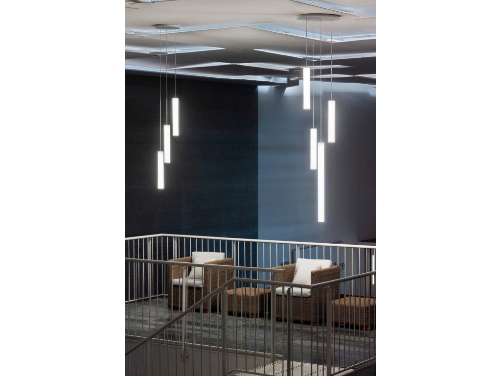 Tu-V LED závěsné svítidlo v různých délkách. Lze kombinovat do vertikálních kaskád nebo do propracovaných stropních světelných kompozic; nepostradatelná světelná socha. Materiály: difuzor z přírodního polyethylenu, uzávěr z bílého lakovaného hliníku.