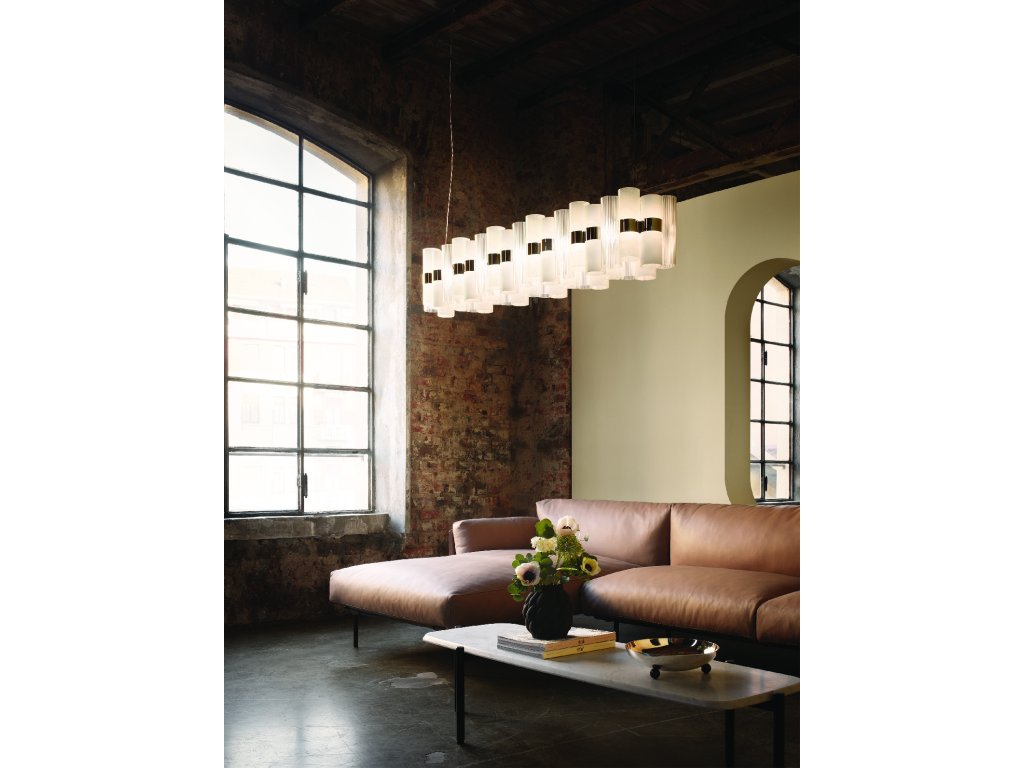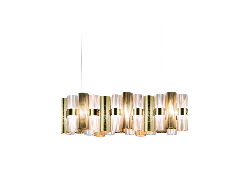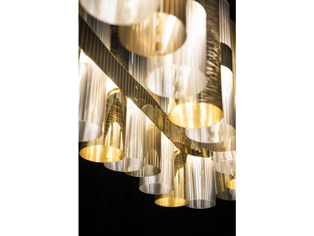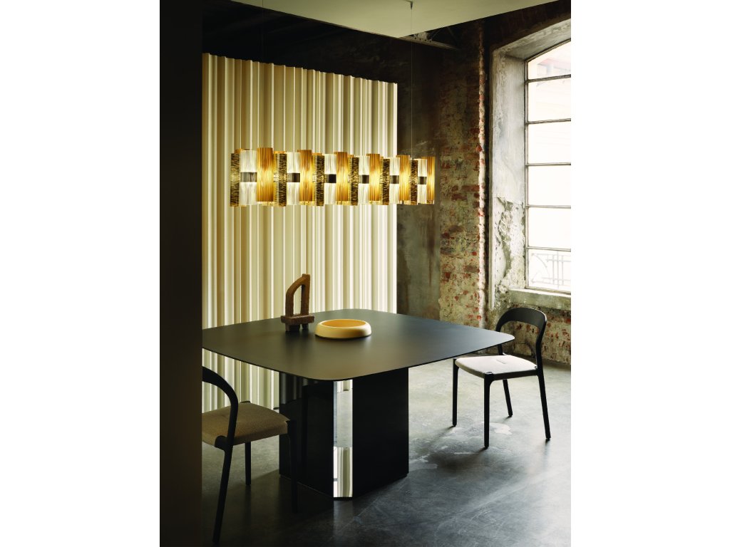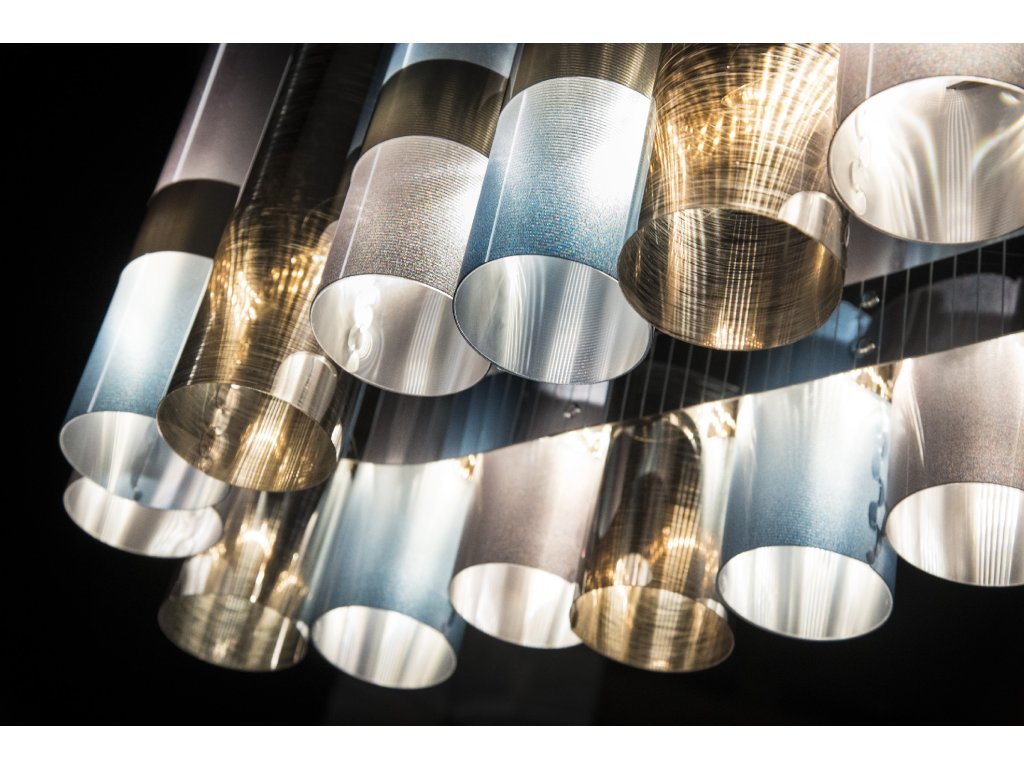 - závesné svietidlo La Lollo, ktoré sa vyznačuje sofistikovanými chromatickými odtieňmi, metalickými povrchovými úpravami a efektmi inšpirovanými textilom, vám umožňuje osvetliť a ozdobiť interiéry s všestrannosťou a eleganciou.