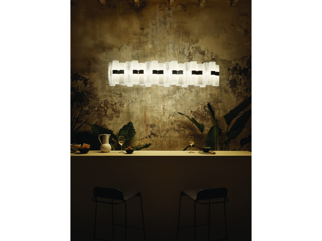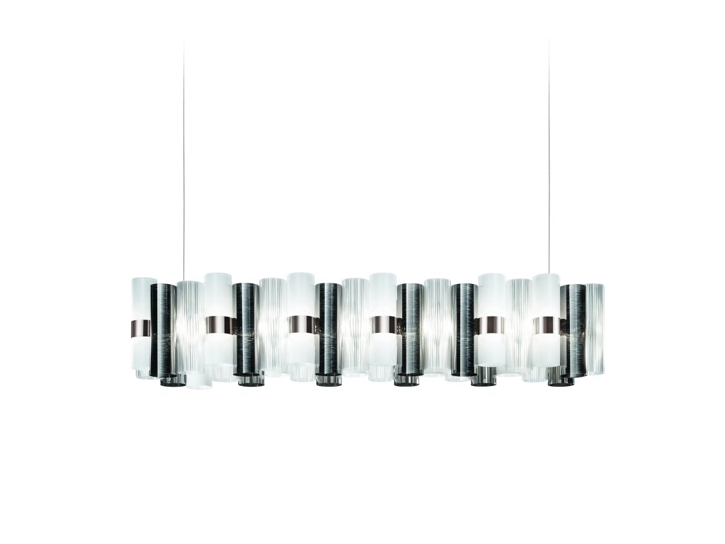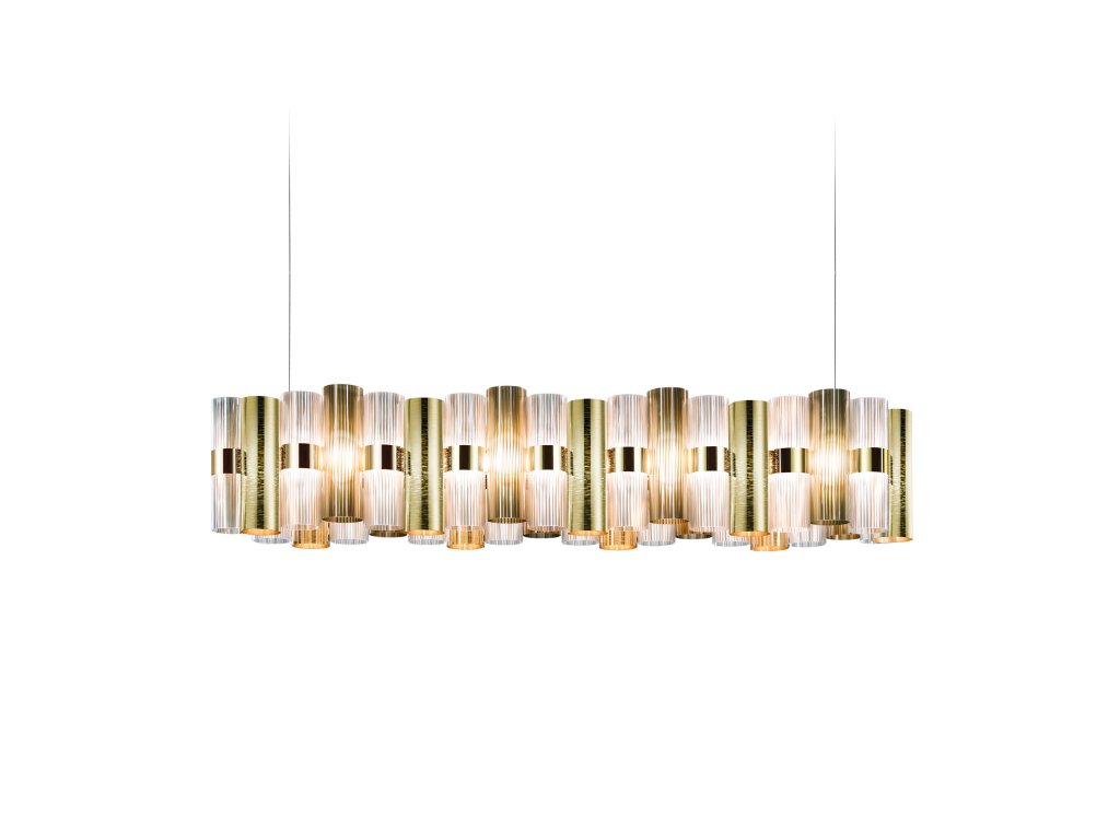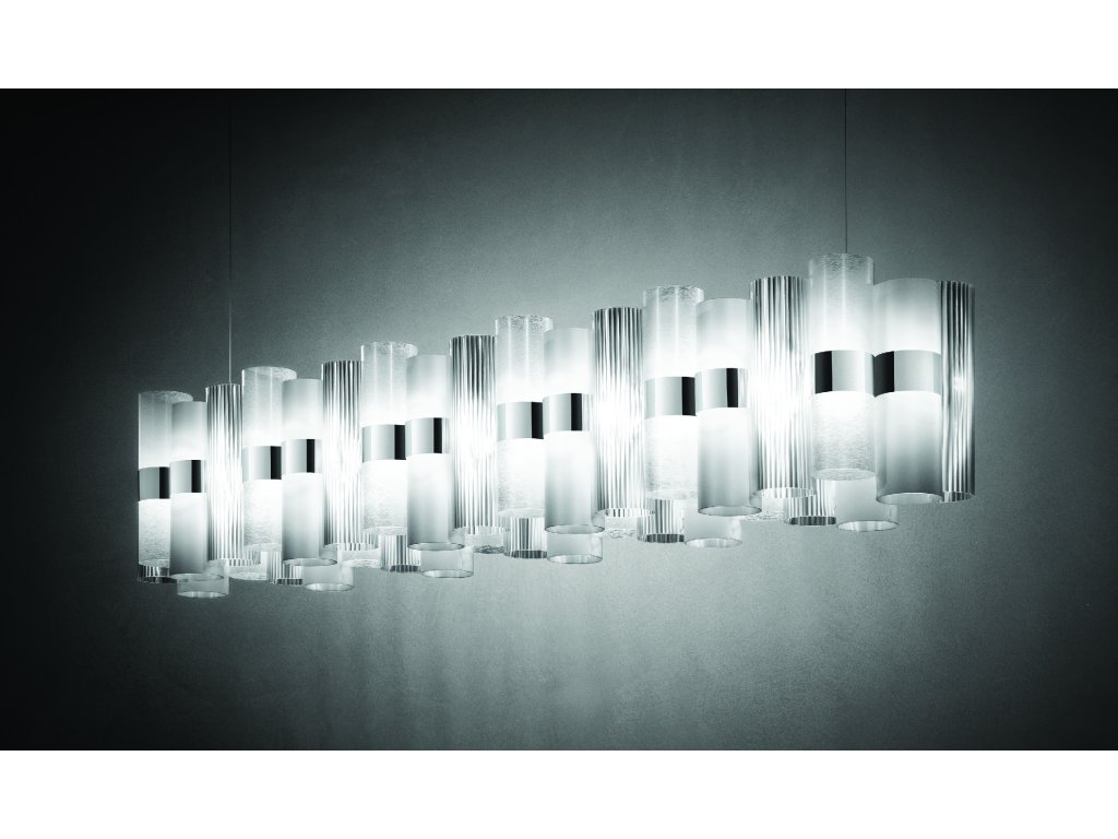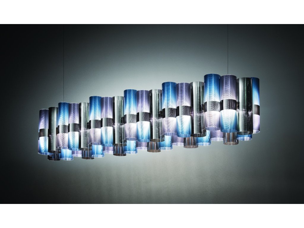 - závesné svietidlo La Lollo, ktoré sa vyznačuje sofistikovanými chromatickými odtieňmi, metalickými povrchovými úpravami a efektmi inšpirovanými textilom, vám umožňuje osvetliť a ozdobiť interiéry s všestrannosťou a eleganciou.