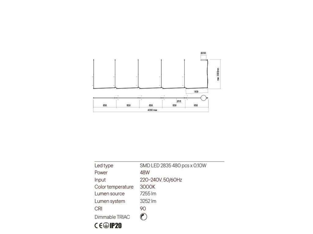 Závesné nastaviteľné LED svietidlo Stick, max. 4290mm