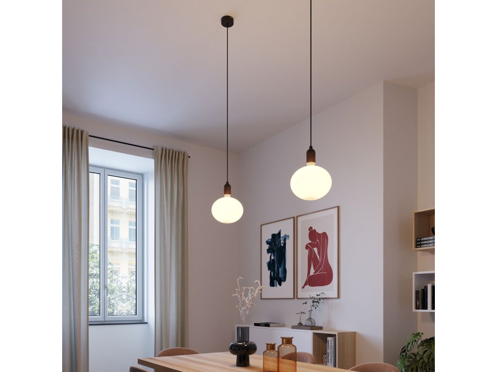 Závesné svetlo s textilným káblom a drevenou úpravou