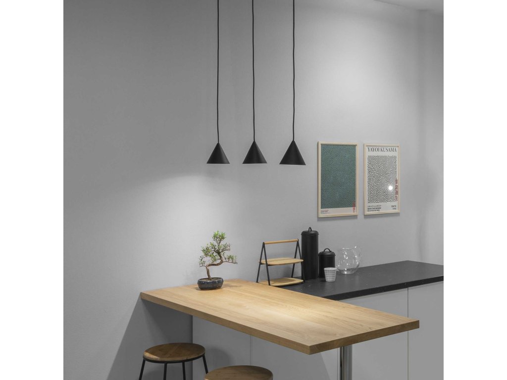 Závesné svietidlo A-Line SP1 z kolekcie interiérového osvetlenia Ideal Lux v menšom prevedení sa hodí do klasicky a moderne zariadených miestností. Vkusne osvieti Vašu kuchynskú linku, jedálenský či pracovný stôl. Svietidlo je vyrobené z kovu s matne bielou povrchovou úpravou nanášanou metódou práškovania. Závesný kábel je potiahnutý bielou tkaninou a je možné ho výškovo nastaviť od 33 cm do 242 cm dĺžky. Vnútorná strana kužeľovitého difúzora s priemerom 30cm je v bielej farbe a je osadená päticou E27 o maximálnom príkone 1 x 60W. Zdroj nie je súčasťou balenia, odporúčame zvoliť LED žiarovku pre úsporu elektrickej energie (obj. kód 926926). Krytie IP20 je určené pre vnútornú montáž.Dodatočné parametre
